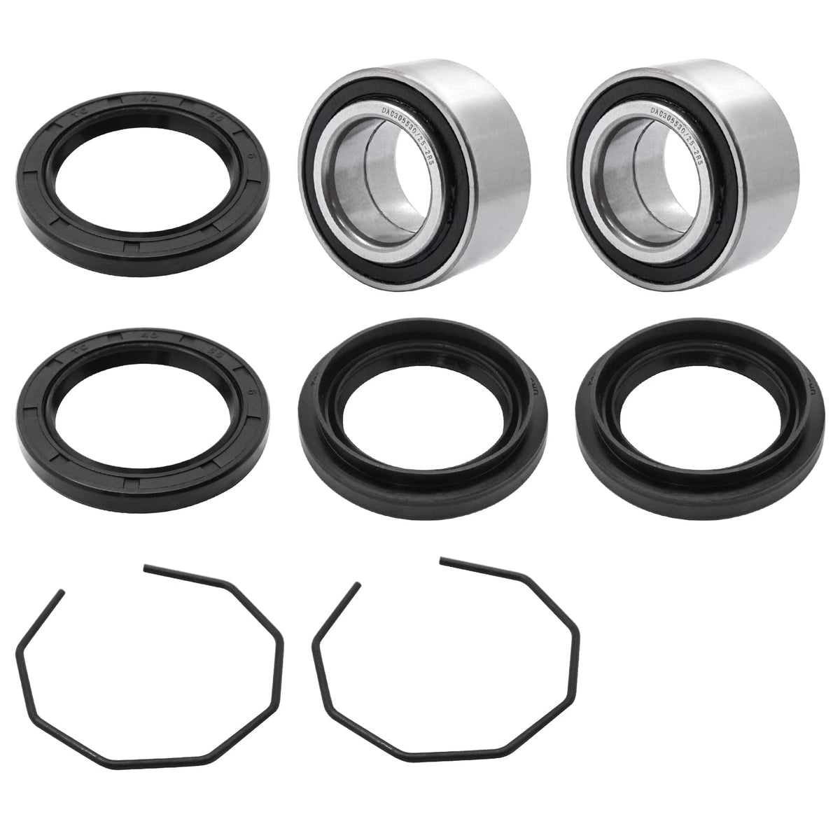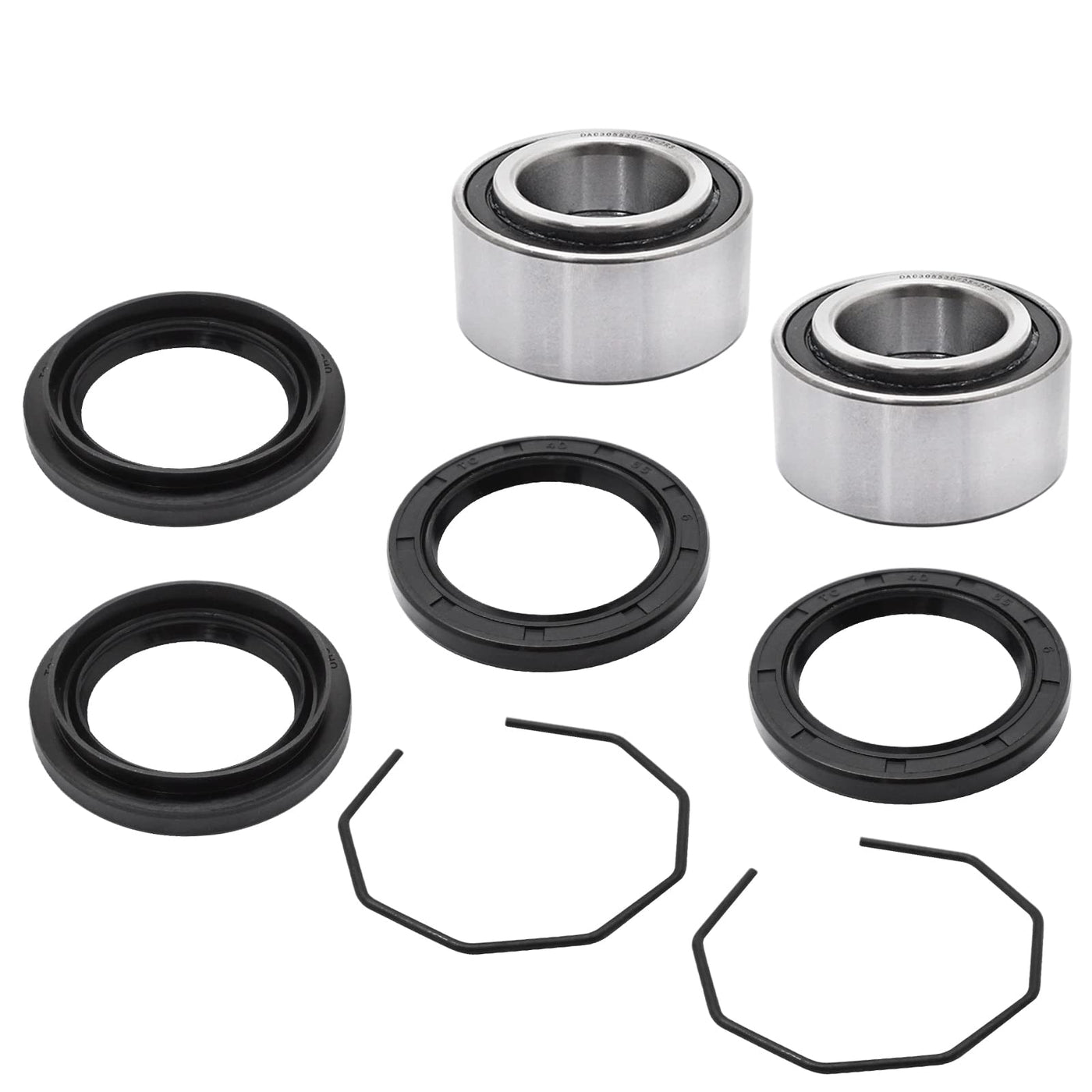 Q: What is included in the JAVIK Wheel Hub Bearings Seals Kit package?A: The JAVIK Wheel Hub Bearings Seals Kit package includes 2 bearings, 2 Seal A, 2 Seal B, and 2 clips, providing everything you need for a complete replacement.
