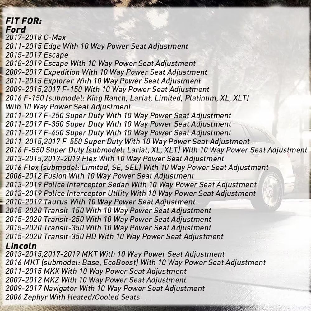 Fits For Ford: 2013-2018 Ford C-Max/Escape 2007-2014 Ford Edge 2007-2017 Ford Expedition/Navigator 2006-2015 Ford Explorer 2007-2010 Ford Explorer Sport Trac 2009-2014 Ford F150 2009-2019 Ford F250/F350/F450/F550/Flex 2006-2012 Ford Fusion 2010-2018 Ford Taurus Fits For Lincoln: 2013-2019 Lincoln Police Interceptor Sedan/ Mkt 2010-2014 Lincoln Mark Lt 2007-2015 Lincoln Mkx 2007-2012 Lincoln Mkz 2006 Lincoln Zephyr Fits For Mercury: 2006-2011 Mercury Milan 2006-2010 Mercury Mountaineer
