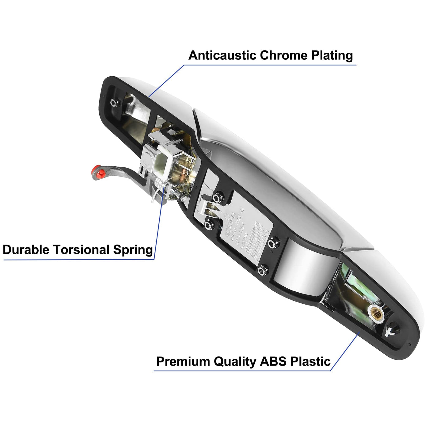 Q: What material is the door handle made from?A: The door handle is made from Acrylonitrile Butadiene Styrene (ABS), which is known for its durability and resistance to impact, ensuring long-lasting performance.