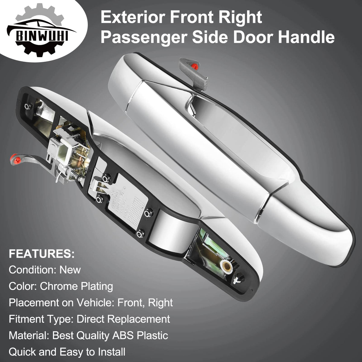 BINWUHI Chrome Front Passenger Side Exterior Door Handle for 2007-2013 GMC Sierra, Yukon XL, Cadillac Escalade, Chevy Silverado, Tahoe, Suburban