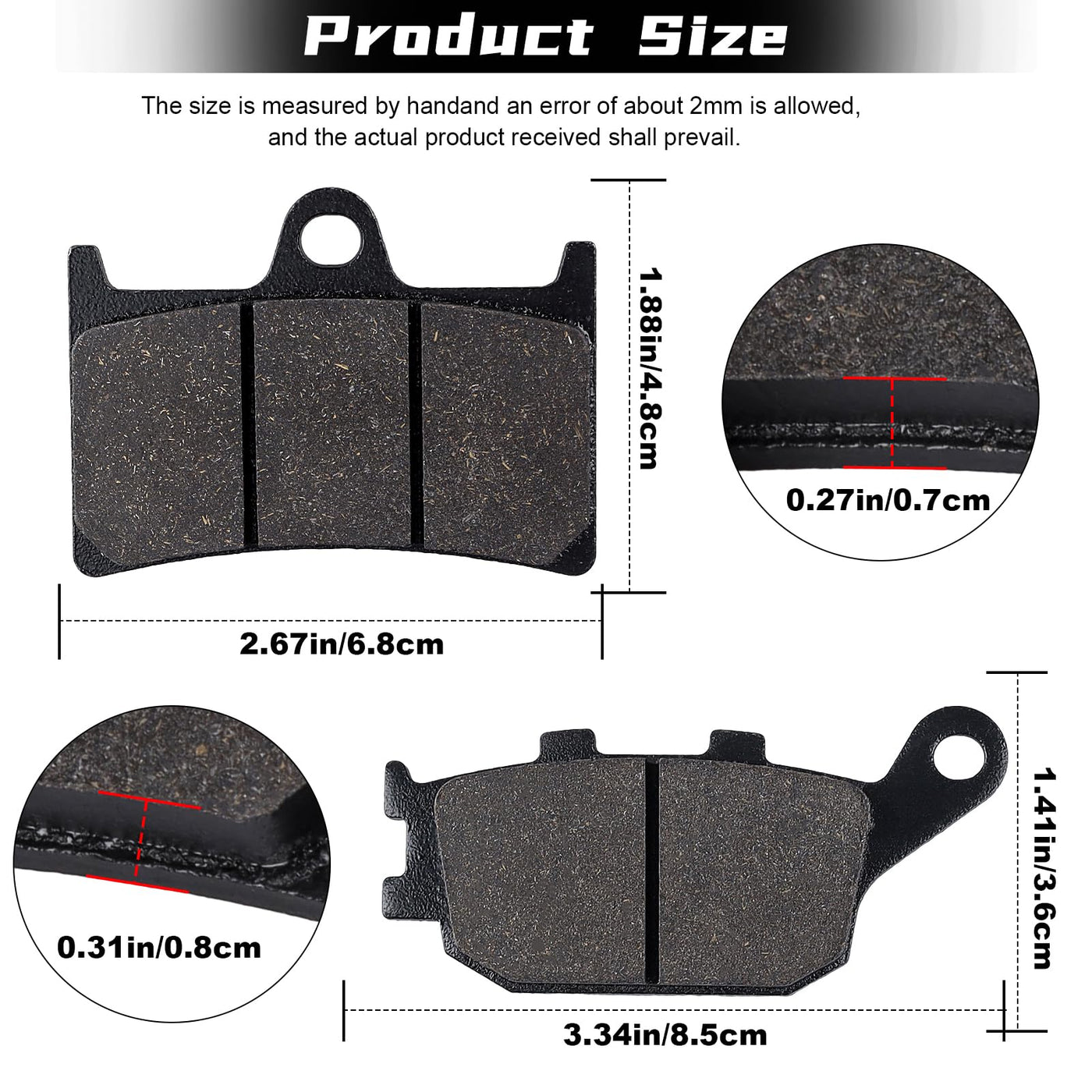 About Our Brake Pads: * Position: Front And Rear * Material: Semi-Metallic * Dimension: Front 50.5 X 69 X 8.5Mm Rear 86.5 X 41.5 X 10Mm * Package Includes: 3 Pairs Of Brake Pads (2 Pairs Of Front And 1 Pair Of Rear)
