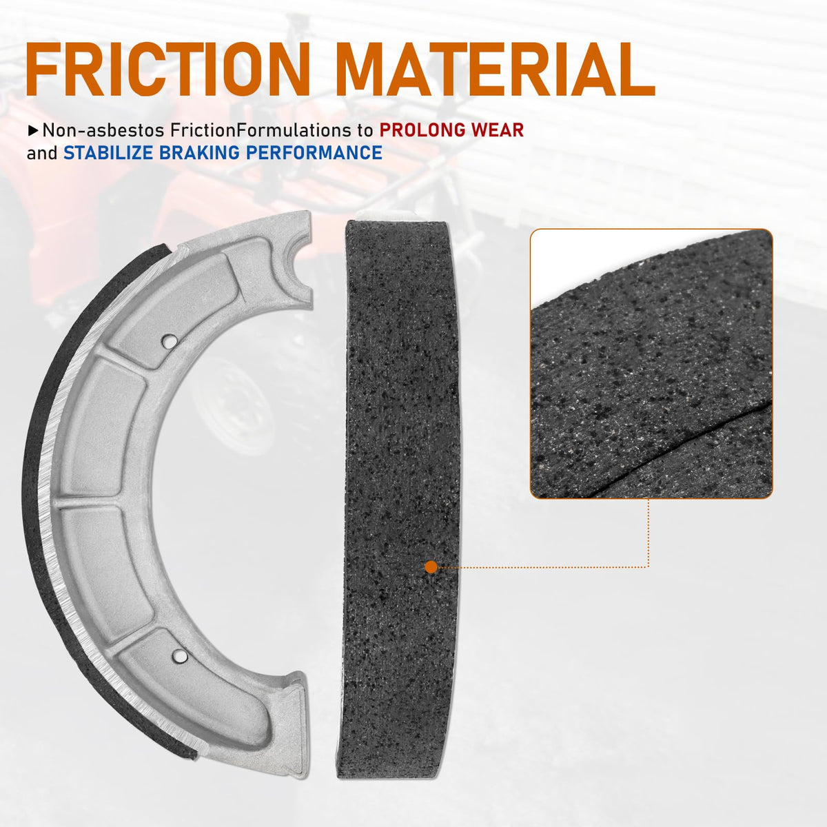 Q: Are these brake shoes suitable for both front and rear applications?A: Yes, these brake shoes are designed for both front and rear applications on compatible Yamaha ATVs. Be sure to check the specific model compatibility to ensure proper fitment.