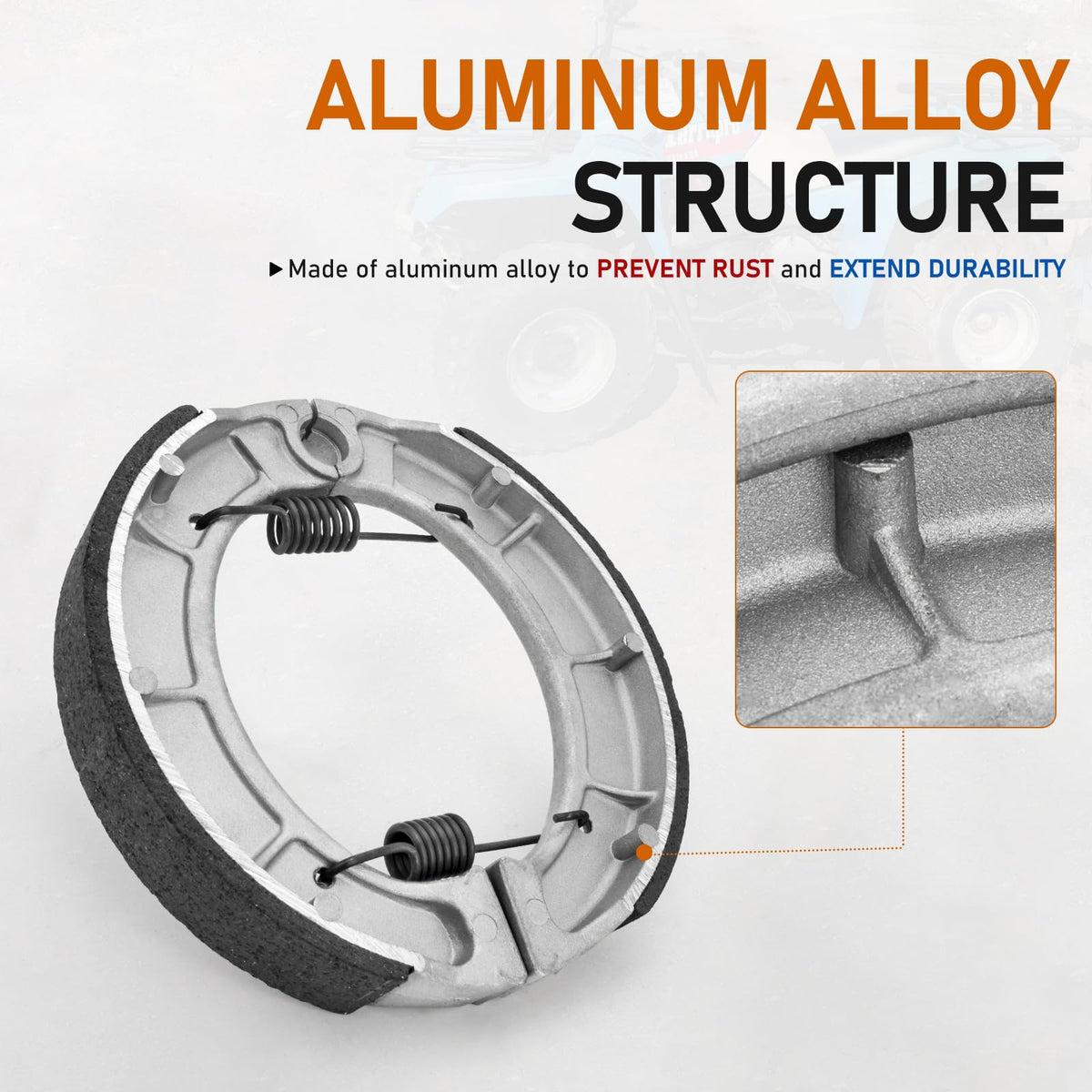 Q: What is included in the package for these brake shoes?A: The package includes two brake shoes and two springs, providing everything you need for a complete replacement of your ATV's brake shoes.