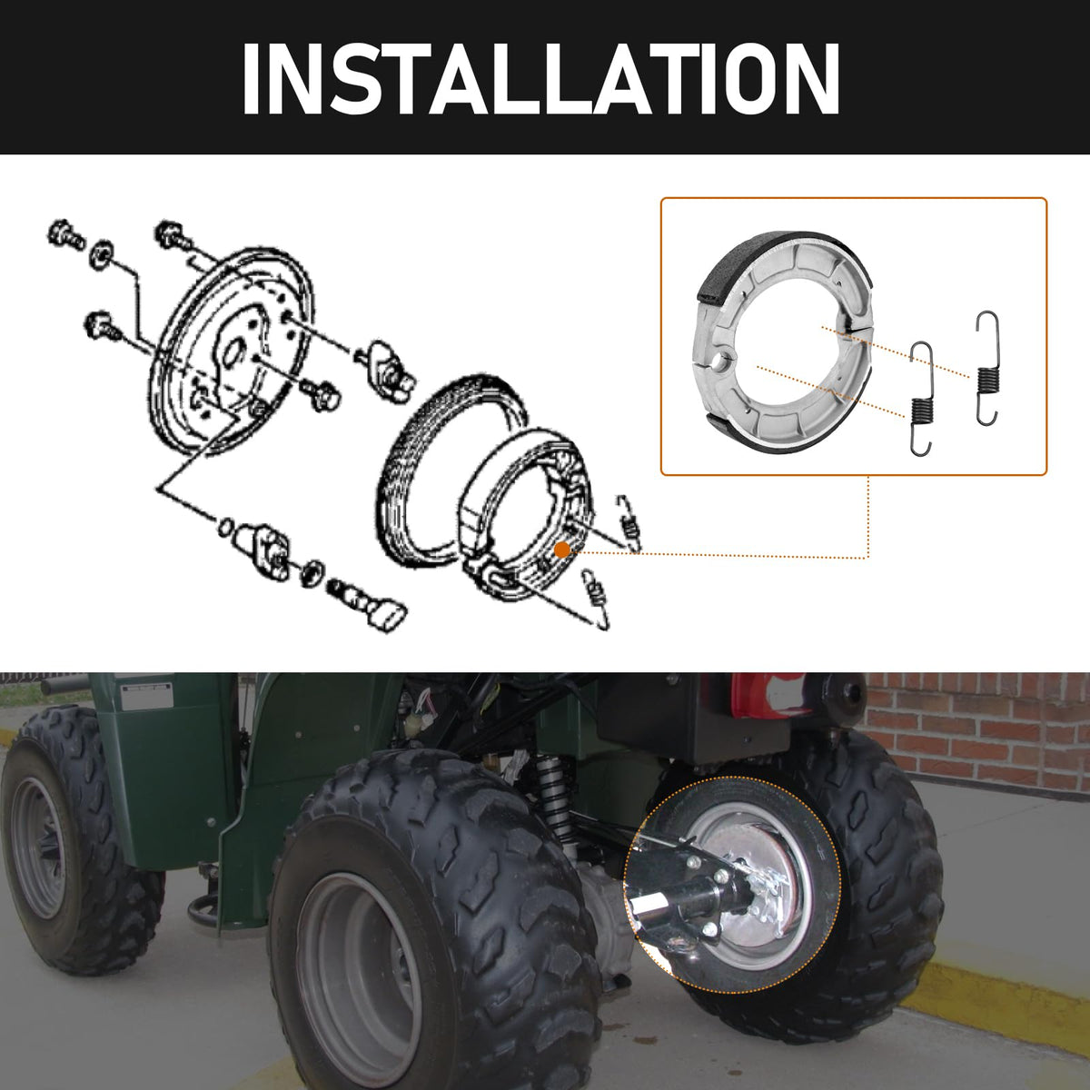Q: How do I install these brake shoes on my Yamaha ATV?A: Installation of these brake shoes typically involves removing the wheel and drum, replacing the old shoes with the new ones, and reassembling the components. It is recommended to consult a service manual for your specific model for detailed installation instructions or seek professional assistance if needed.