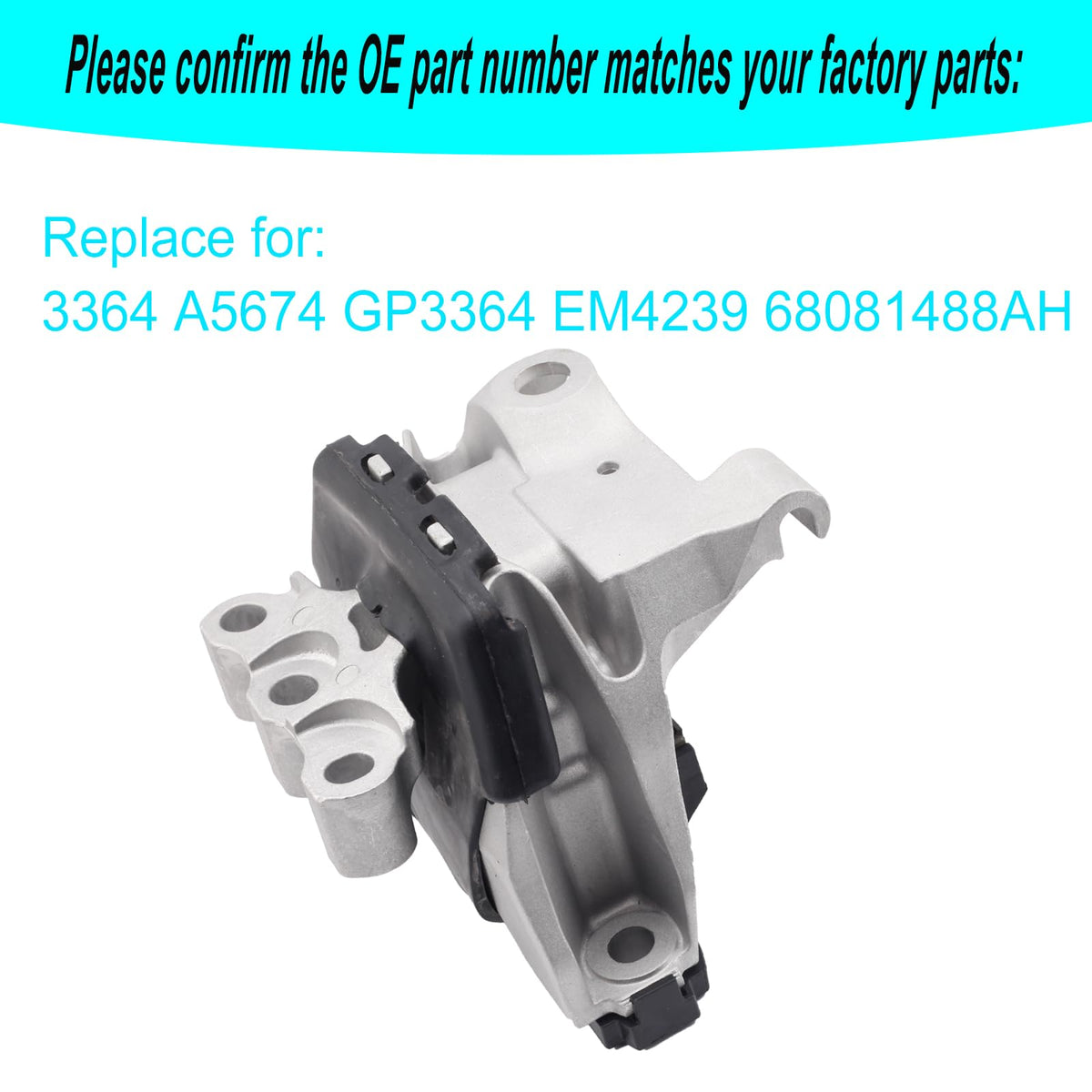 Front Right Motor Mount with Hydraulic Compatible with 2013-2016 Dodge Dart 2.0L 2.4L Replacement for 3364 A5674 68081488AH