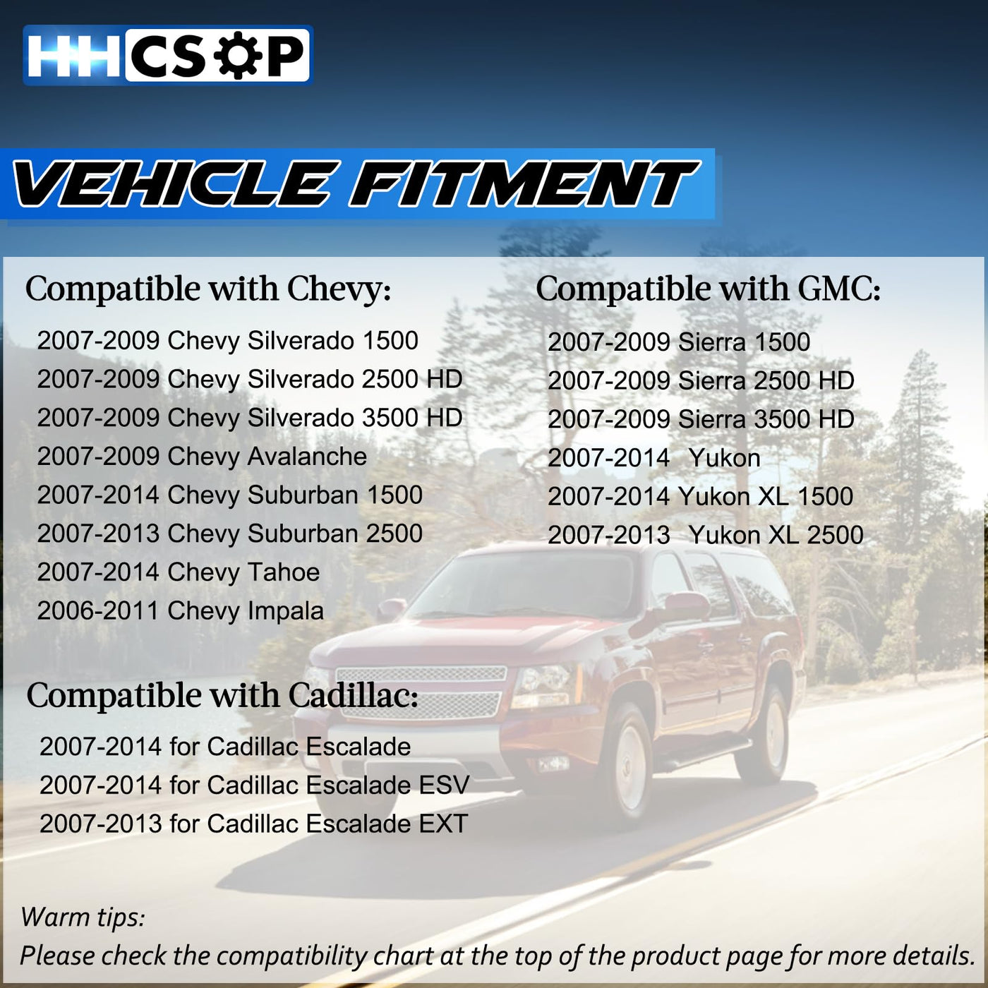 About Hhcsop Door Lock Actuator: The Door Lock Actuator Is Made Of Robust Metal And Plastic Parts To Ensure Durability. Our Door Lock Actuator And Automotive Accessories Make It Easy For You To Control Your Car Doors. Compatible With Cadillac: 2007-2014 Cadillac Escalade 2007-2014 Cadillac Escalade Esv 2007-2013 Cadillac Escalade Ext Compatible With Chevy: 2007-2009 Chevy Silverado 1500 2007-2009 Chevy Silverado 2500 Hd 2007-2009 Chevy Silverado 3500 Hd 2007-2009 Chevy Avalanche 2007-2014 Chevy Suburban 1500 2007-2013 Chevy Suburban 2500 2007-2014 Chevy Tahoe 2006-2011 Chevy Impala Compatible With Gmc: 2007-2009 Sierra 1500 2007-2009 Sierra 2500 Hd 2007-2009 Sierra 3500 Hd 2007-2014 Yukon 2007-2014 Yukon Xl 1500 2007-2013 Yukon Xl 2500 Interchange Part Numbers: 931-304, 931304 8D1600, 20783852, 25873485, 25876388 Package Includes: 1X Front Right Passenger Side Door Lock Actuator Motor Notes: Enter Your Vehicle Information In The Compatibility Chart At The Top Of The Listing To Check If The Door Lock Actuator Will Fit Or Not.