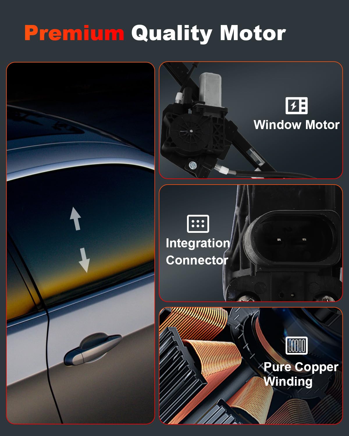 Q: What is included in the package when I purchase this power window regulator?A: The package includes the power window regulator with motor assembly, providing everything you need for a complete replacement.
