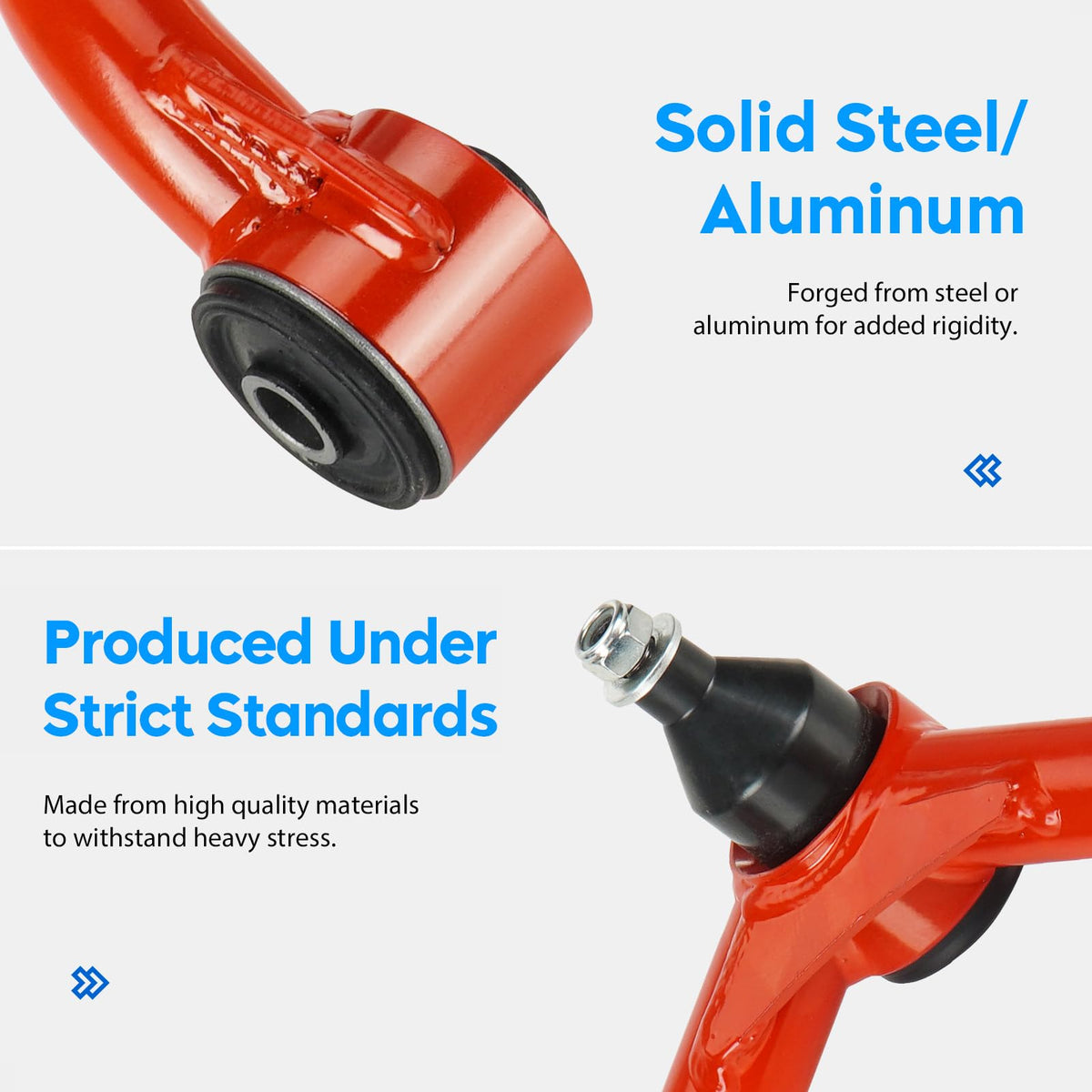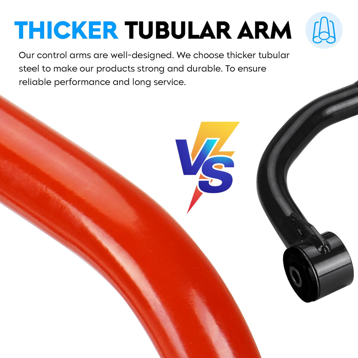 About Us: --We are founded by a professional automotive parts technology team, providing customers with various types of automotive parts and accessories with the highest quality products. Each product is produced by professional manufacturers and strictly complies with regulations, providing car enthusiasts with a safer, happier, and more passionate driving experience. Surface Treatment: --The anti-corrosion coating on the control arm of the upper limb can prolong the service life and prevent rust Compatible with: --for Chevy Silverado 2500 HD 2011-2019 --for Chevy Silverado 3500 HD 2011-2019 --for GMC Sierra 2500 HD 2011-2019 --for GMC Sierra 3500 HD 2011-2019 Kit Includes: --2x front upper control arms with ball joints ( 2-4 lift suspension adjustable) Warm Note: --Please check your vehicle model carefully before purchasing.