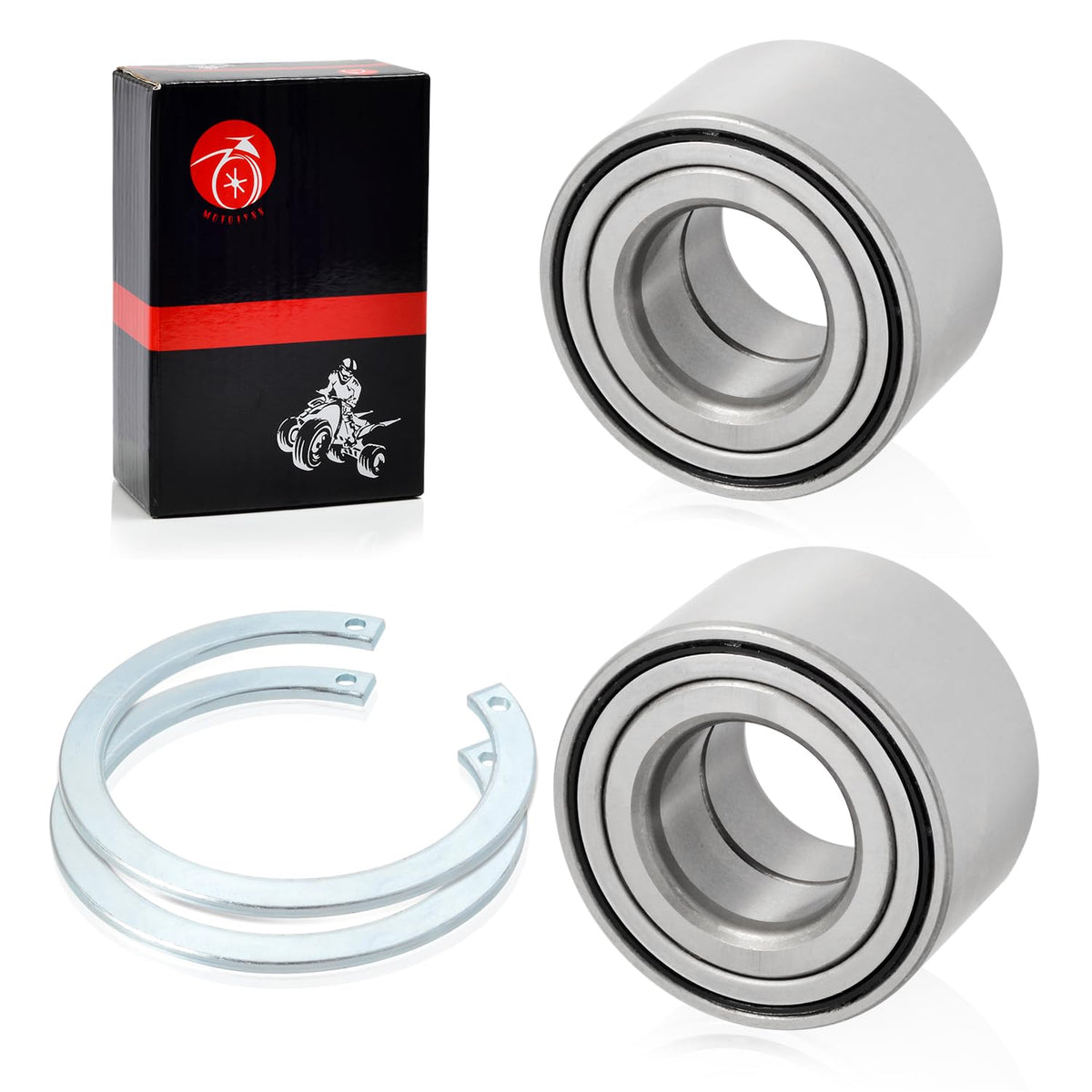 Q: What is included in the package of the Front Wheel Bearings & Circlips?A: The package includes 2x 27x55x32mm front wheel bearings and 2x circlips, providing everything you need for a complete replacement.