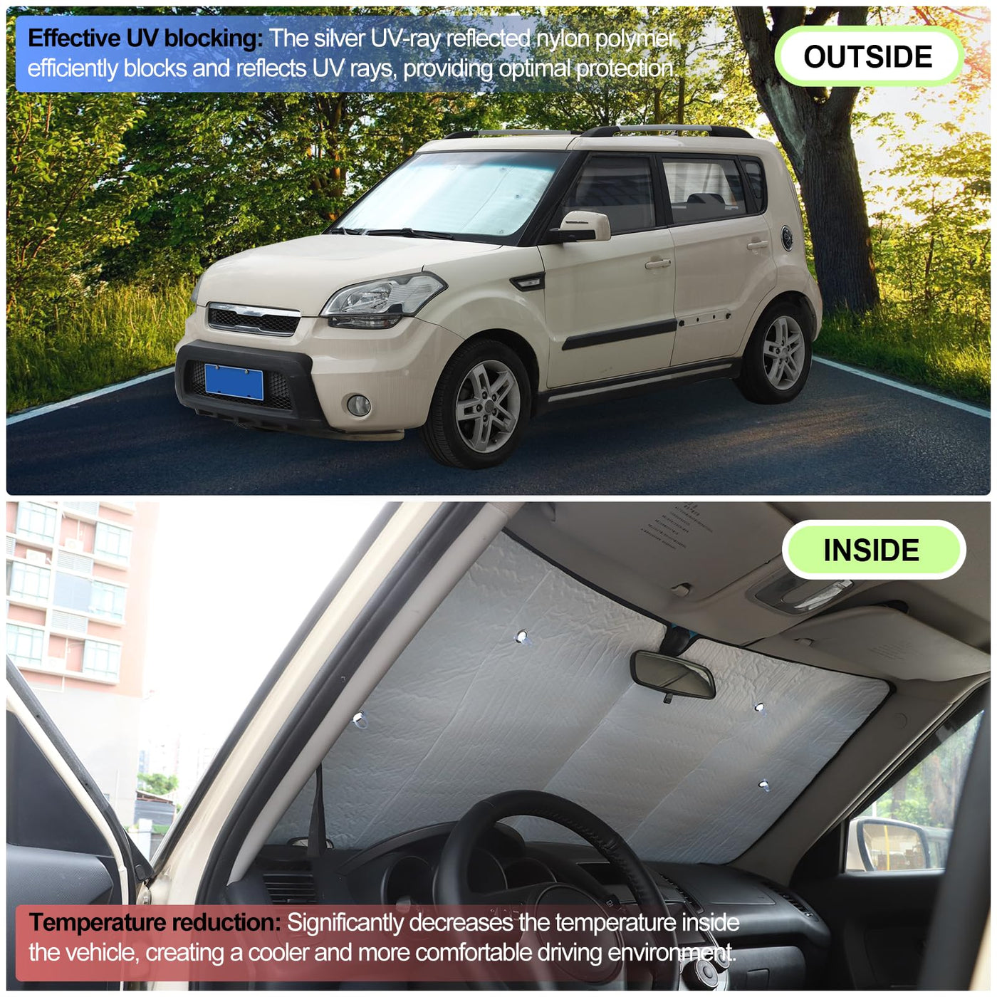 Front Windshield Sunshade For Kia Soul 2009-2013, Custom Fit Windshield Sun Shade, Foldable Reflective Sun Visor, Screen Shield Cover Uv Blocker Protector Heatshield Keeps Your Vehicle Cool (Silver)