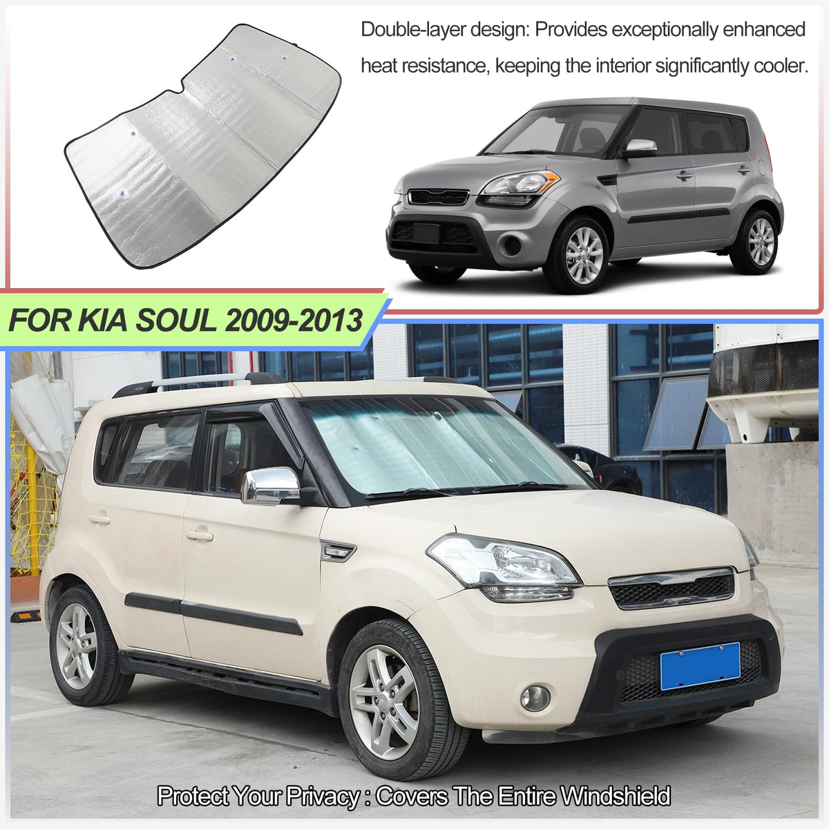 Q: Is this sunshade compatible with all Kia Soul models?A: The Front Windshield Sunshade is specifically designed to fit Kia Soul models from 2009 to 2013. Please ensure that your vehicle falls within these model years for optimal performance.