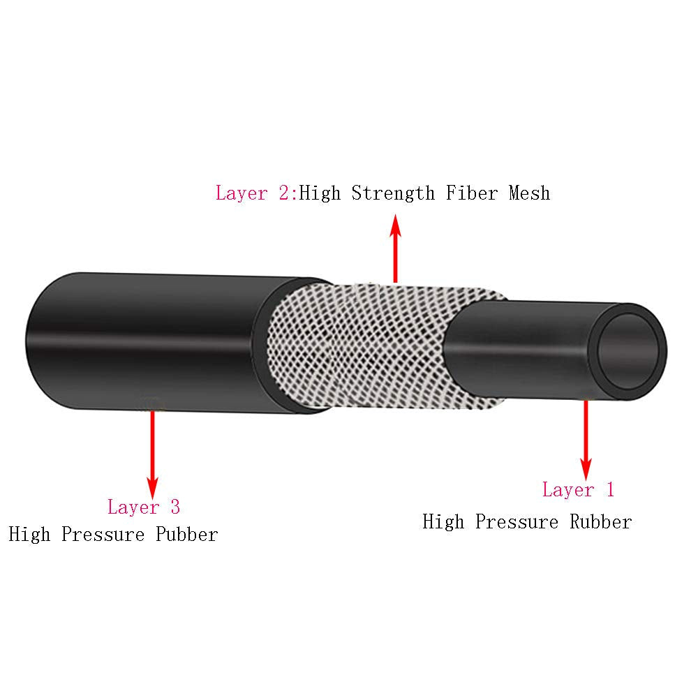 Q: What materials are used in the construction of the Fuel Line?A: The Fuel Line is made from high-quality rubber and features a three-layer construction: an inner and outer rubber pipe with a middle layer of woven fiber nylon thread for added durability.