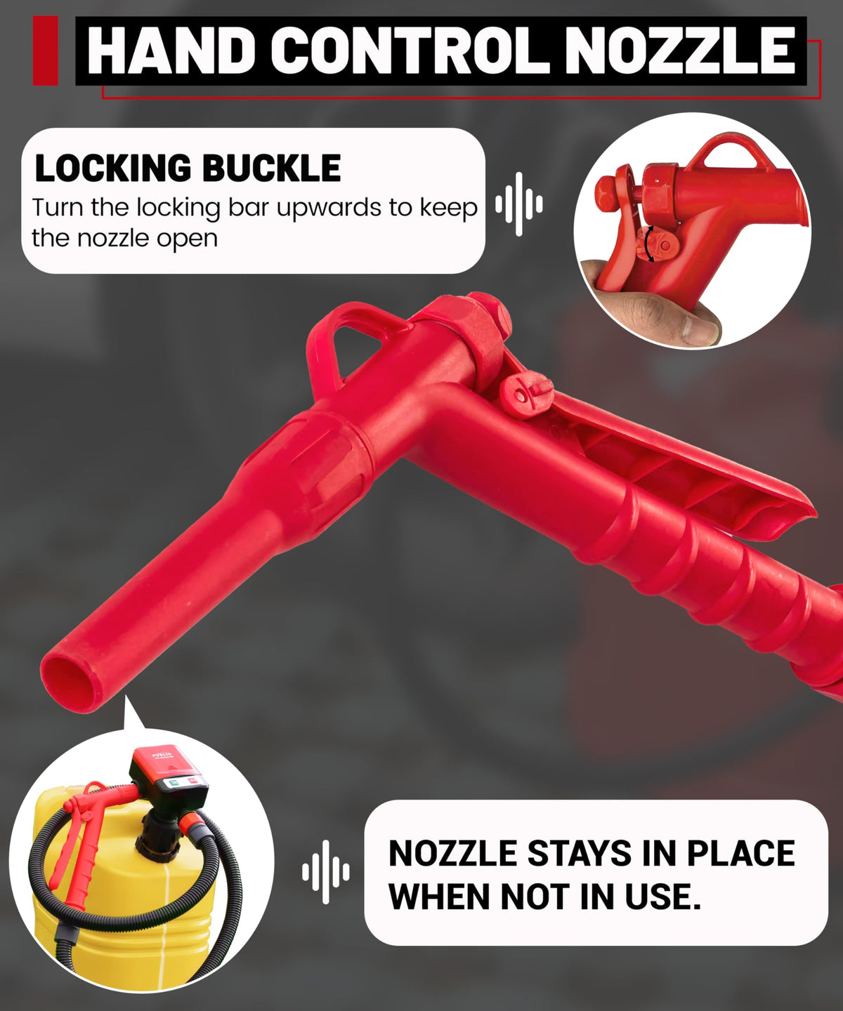 FUELIO Gas Can Pump - Fuel Transfer Pump with Auto Shut Off Nozzle, Fix Clip, Extra Long Hose, 3 Adapters, Gas Pump Ideal For Gasoline, Diesel, Kerosene Transfer