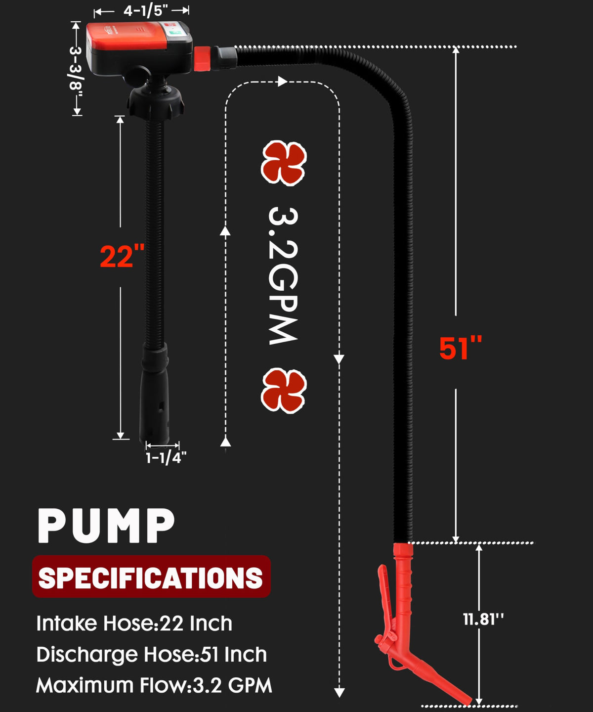 FUELIO Gas Can Pump - AA Battery Powered Fuel Transfer Pump with Auto Shut Off Nozzle, Fix Clip, Extra Long Hose, 3 Adapters, Ga