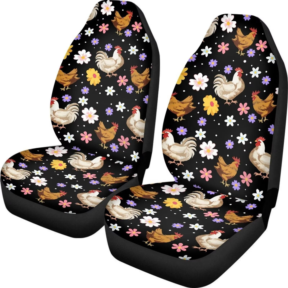 Fuibeng Groovy Flower And Chicken Seat Covers For Cars,Set Of 2 Rooster Auto Seat Covers Front Seats Only,Breathable Bucket Seat