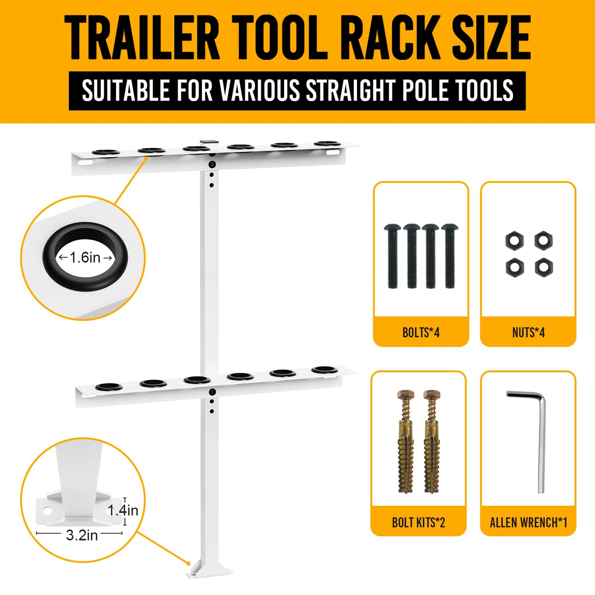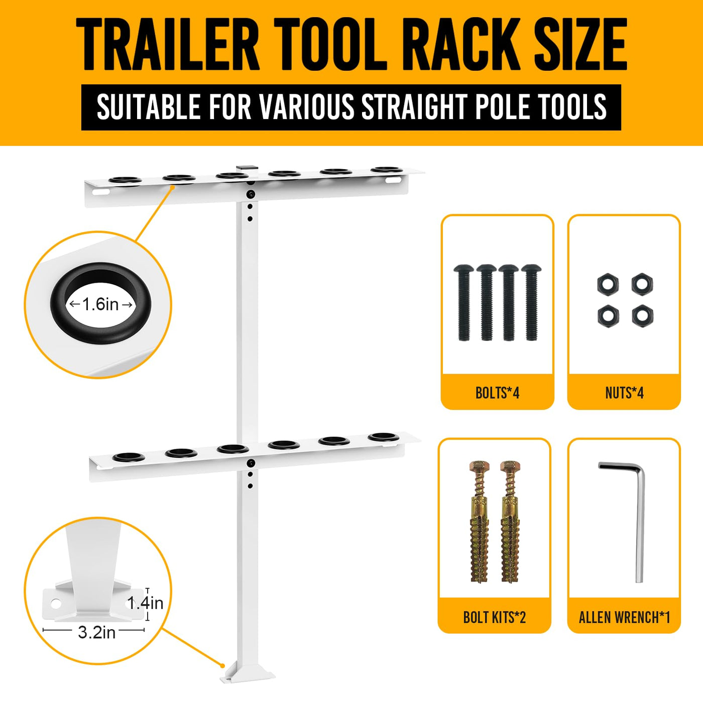 Fumingpal Trailer Tool Rack Shovel Holder - Rake Holder for Trailer Landscape Hand Tool Rack Trailer Rake Rack with 6 Tool Holes
