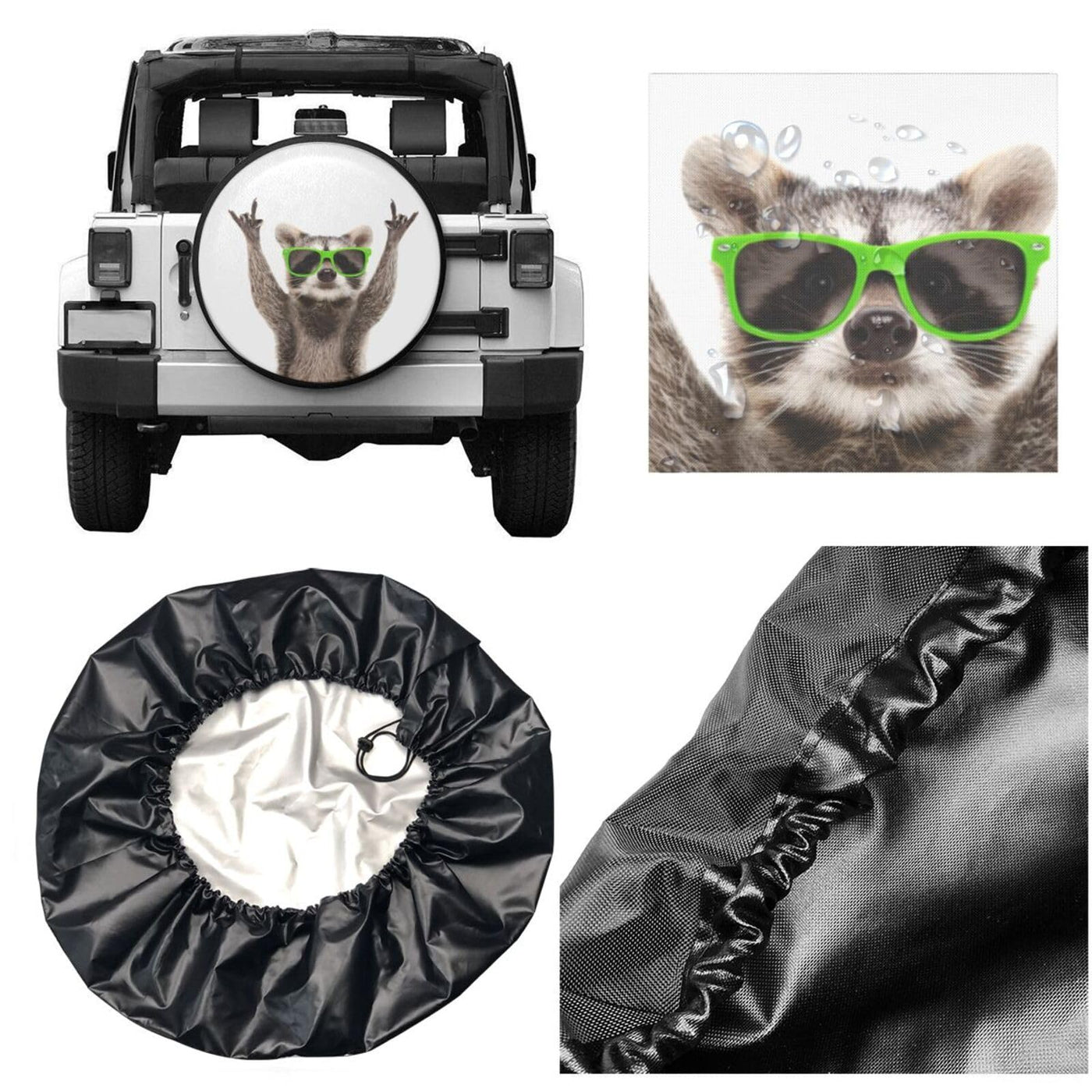 Funny Raccoon in Green Sunglasses Spare Tire Cover Cute Animal Tire Wheel Covers Waterproof Weatherproof Wheel Tire Protector Ty