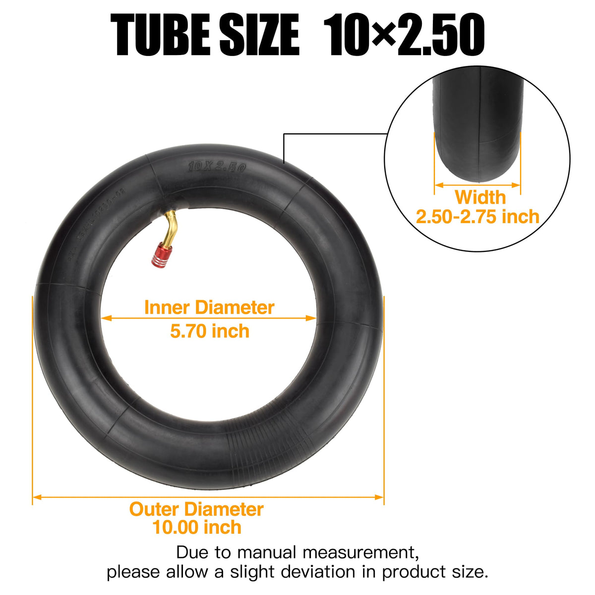 Perfect Fit Inner Tube For 10X2.50 Tires For 10' Outside Diameter Wheel Electric Scooter ( Not Fit 10' Rim,For Example 2.50X10 Tire ) For 36V 48V 400W 500W 800W Hub Motor Mijia M365 Smart Self Balance Mobility Electric Scooter Made From Premium Rubber And Built To Last: Made With Premium-Quality, Heavy-Duty Rubber, These Inner Tubes Are Highly Durable And Ideal For Home, Professional And Commercial / Industrial Use Thorn Resistant Innertube With A Bent Angle Valve For Easy Inflation