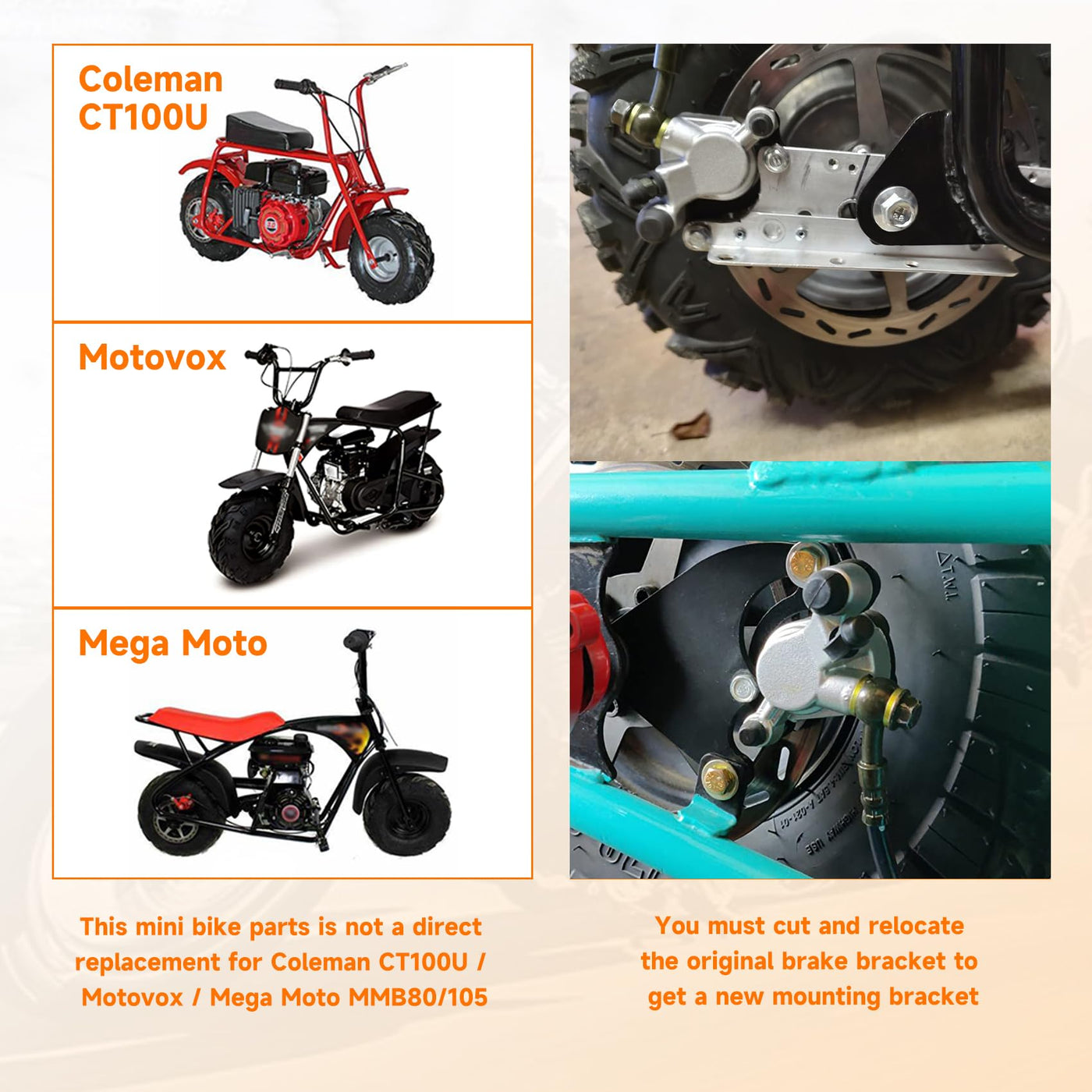 Q: Can I use this brake assembly on my Coleman CT100U mini bike?A: The FVRITO Hydraulic Brake Assembly is not a direct replacement for the Coleman CT100U or similar models. You will need to cut and relocate the original brake bracket to adapt the assembly for use on those mini bikes.