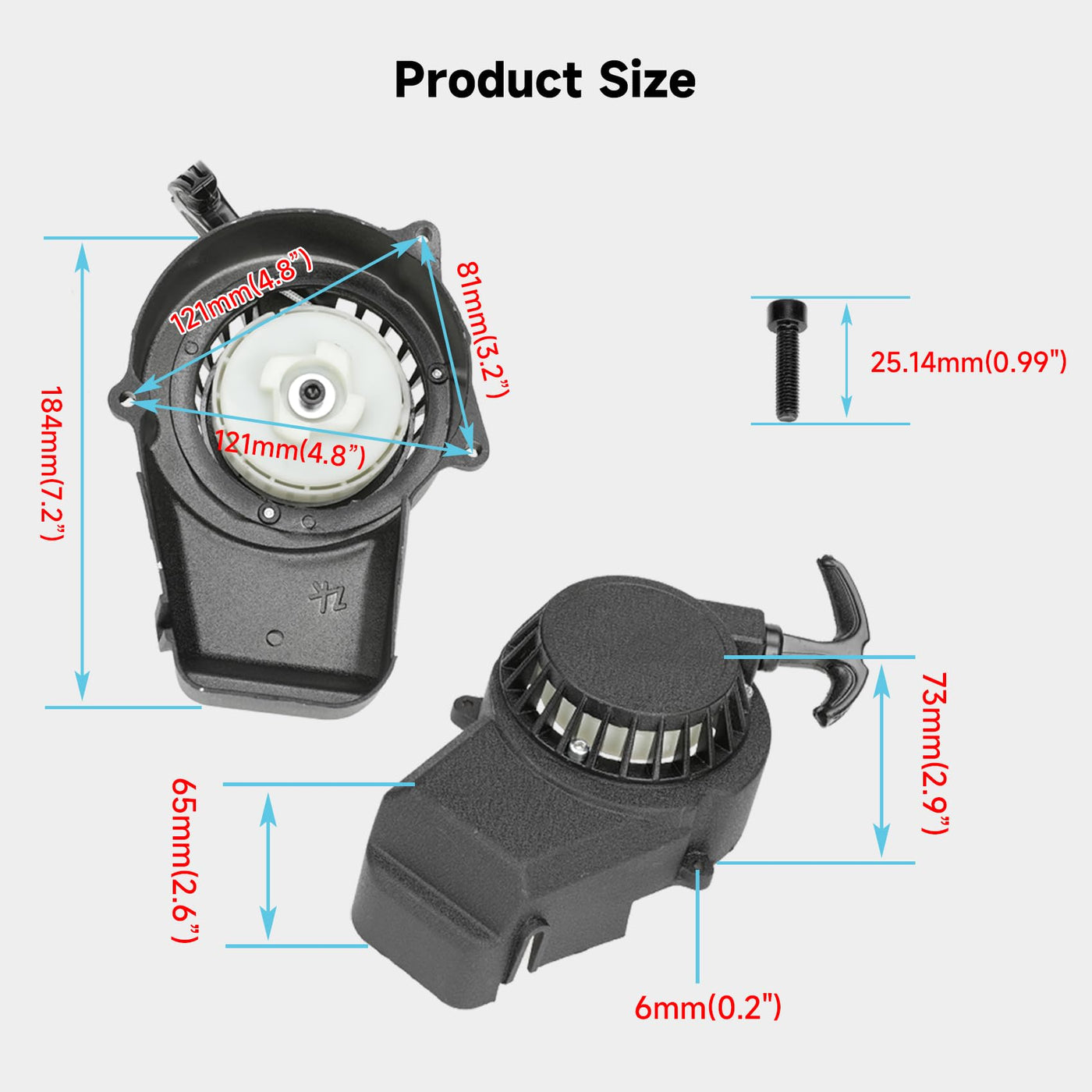 Durable Material: Constructed from premium aluminum alloy, this pull start recoil starter is designed to withstand the rigors of frequent use without breaking or deforming.