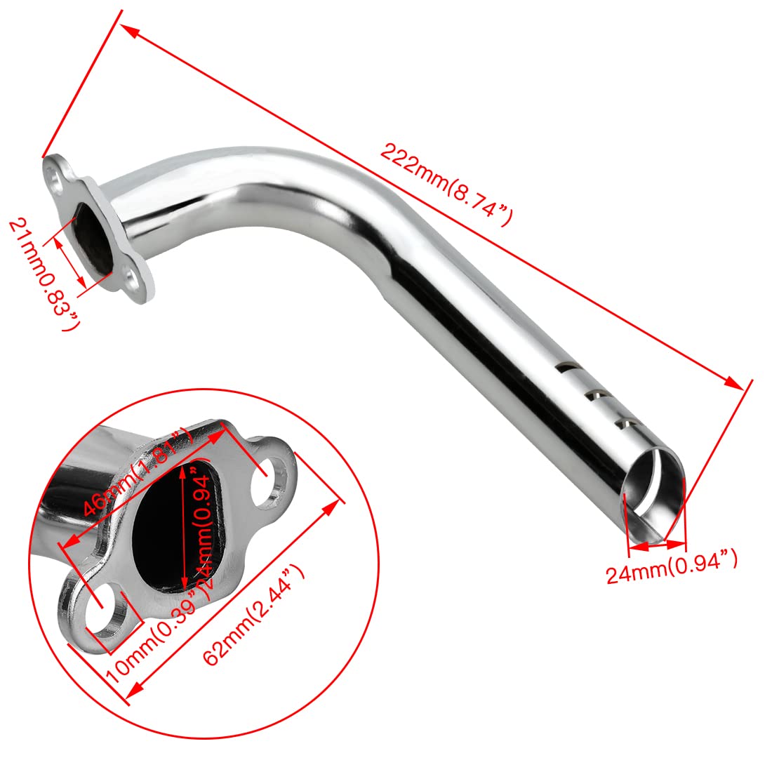 Note: This exhaust pipe will show different color from itself due to the high heat generated by the engine. So you must know this before you make your purchase! And please check as much as possible to the item picture, model and size carefully before purchasing. Or leave us messages if you have any questions.
