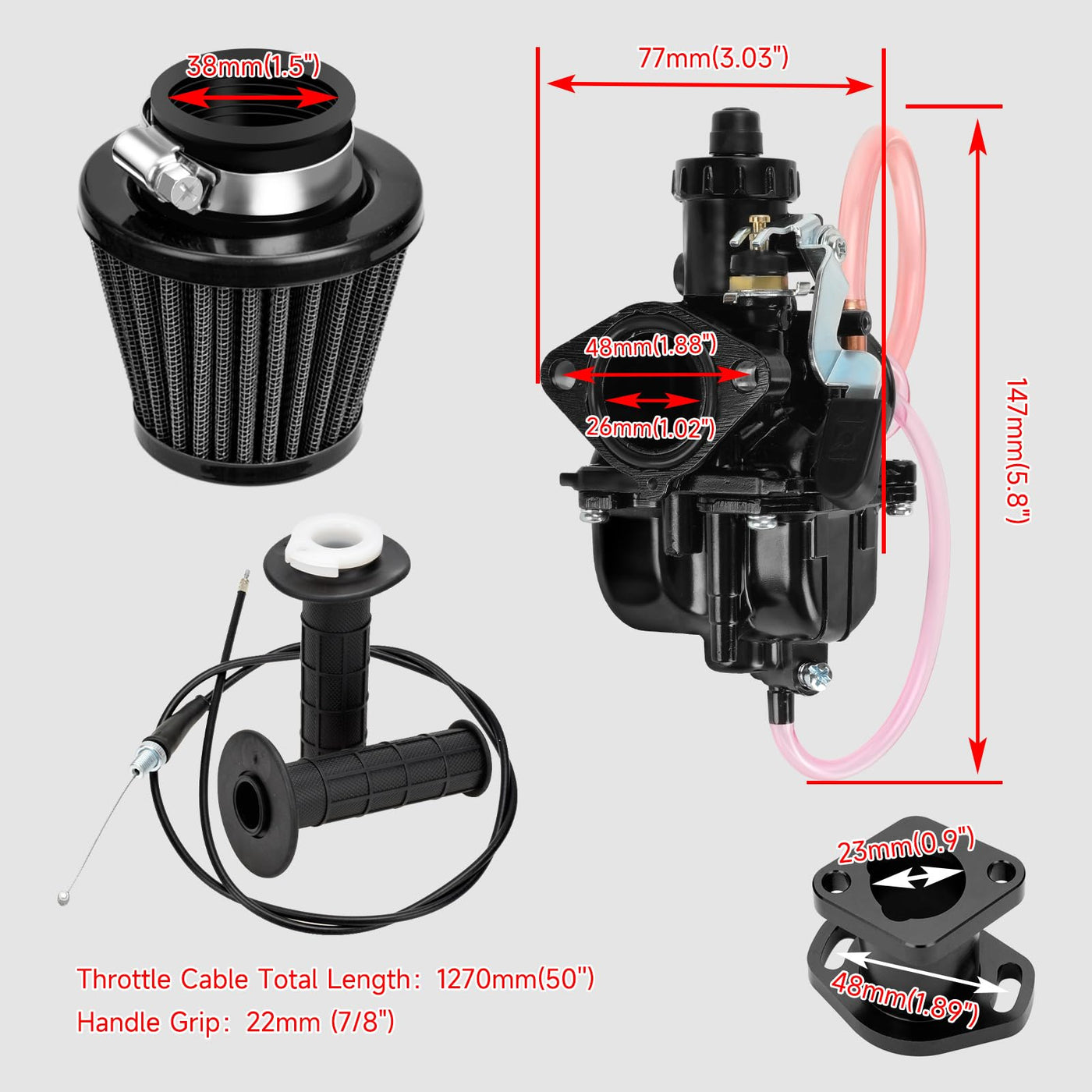 FVRITO VM22 Carburetor and Throttle Kit for Predator 212cc 196cc Coleman Mini Bike CT200U CT200U-EX BT200X Axis M200 KT196 Go Ka