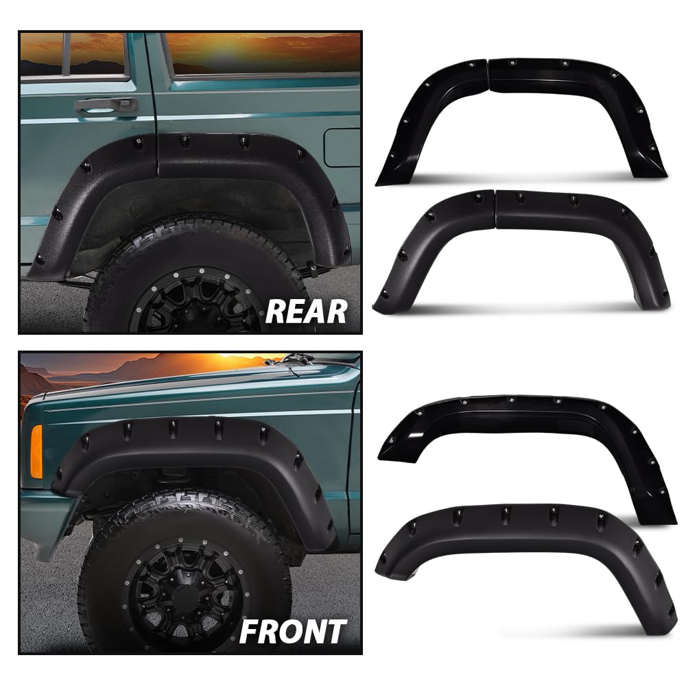 Fender Flares Compatible with Jeep Cherokee XJ 4-Door Sport Utility Models 1984-2001/ Not Fit Models with Side Skirts(Ground Kits) and Body Modification Textured Pocket Rivet 6pcs