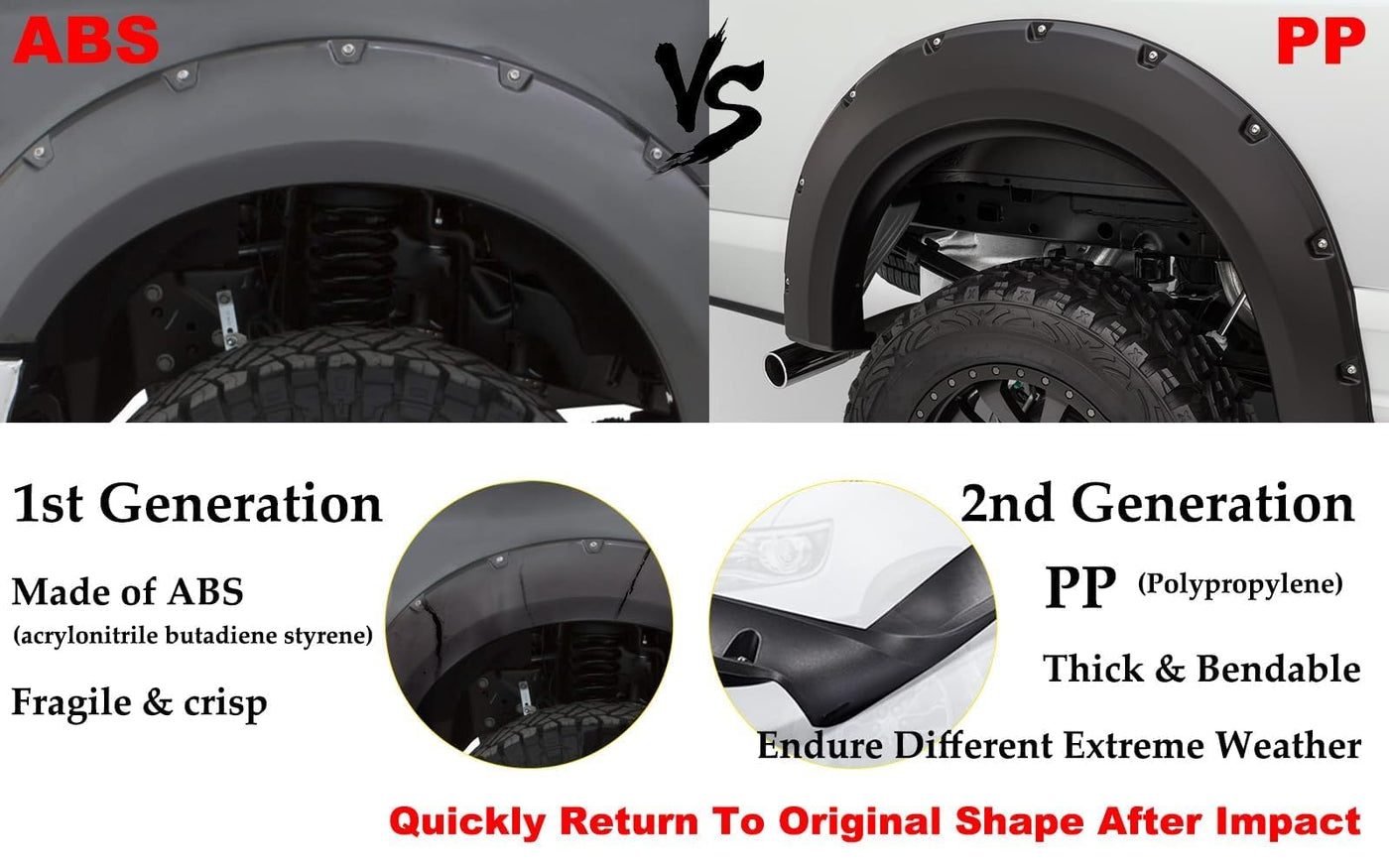 Fender Flares 4 PCS Compatible with Chevy Silverado 1500 2014-2018/ Silverado 2500 3500HD 2015-2019 (6.5' and 8' Long Bed), NOT Fit GMC Sierra & Dually model (Textured Factory Style)