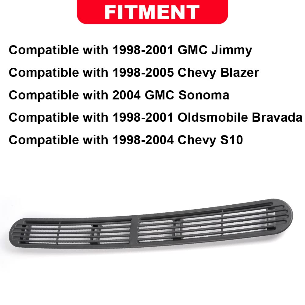 Title: Defrost Vent Panel Application: Compatible For GMC Jimmy 1998-2001 Compatible For Chevrolet Blazer 1998-2005 Compatible For GMC Sonoma 2004 Compatible For Oldsmobile Bravada 1998-2001 Compatible For Chevrolet S10 1998-2004 Color: As the picture Description: Length: 26.37 Brand New GM Front Center Dash Defroster Grille Black (Graphite) Finish Direct replacement Built to strict quality control standards WITHOUT Sensor Hole Package Includes: 1 * Defrost Vent Panel Note: All of the items in our shop will come to you with the tracking number.