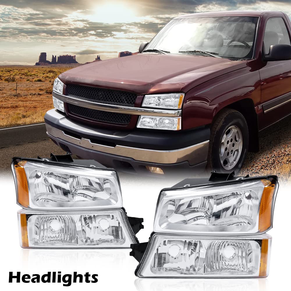 G-Plus Headlight Assembly Compatible With Chevy Avalanche Silverado 1500 2500 Hd 3500 2003-2006/Fit Chevy Silverado 1500 2500 35