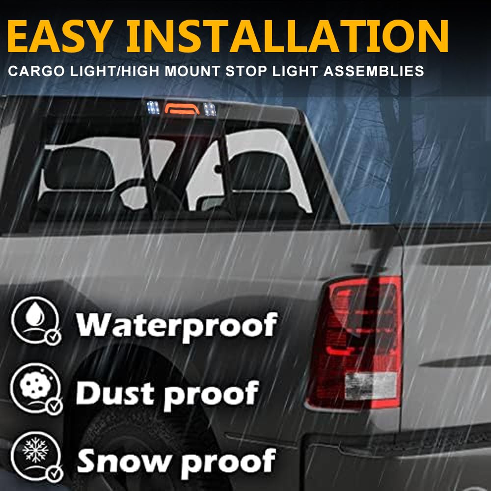 Q: What materials are used in the construction of this brake light?A: This third brake light is constructed from premium PMMA and ABS materials, which provide durability, UV resistance, and protection against water, snow, or heavy rain.
