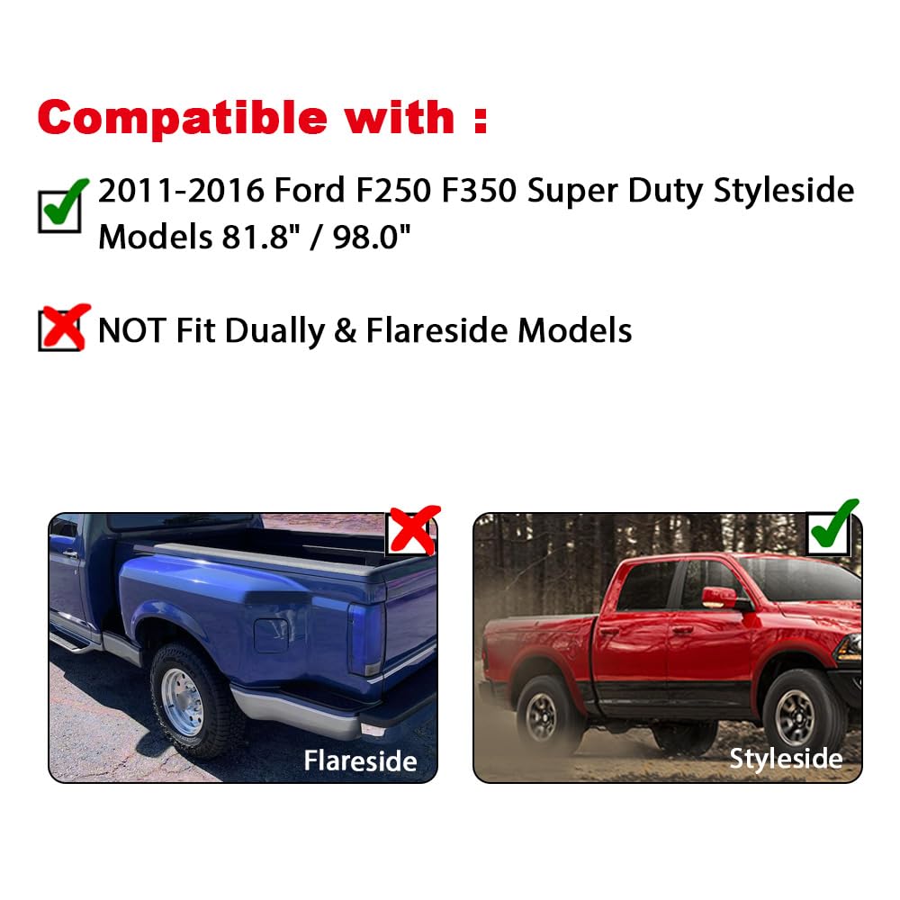 G-Plus Pocket Riveted Fender Flares, Compatible With 2011-2016 Ford F250 F350 Super Duty Styleside Model Only W/ 81.8 '' / 98.0