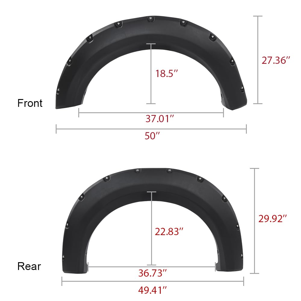 G-Plus Pocket-Riveted Fender Flares, Compatible With Ford F150 2009-2014 Styleside With 67.0 ''/78.8 ''/97.4 '' Bed Models Only(Not Fit Platinum And Raptor Models) Fo1269100, Fo1268100 4Pcs Textured Style