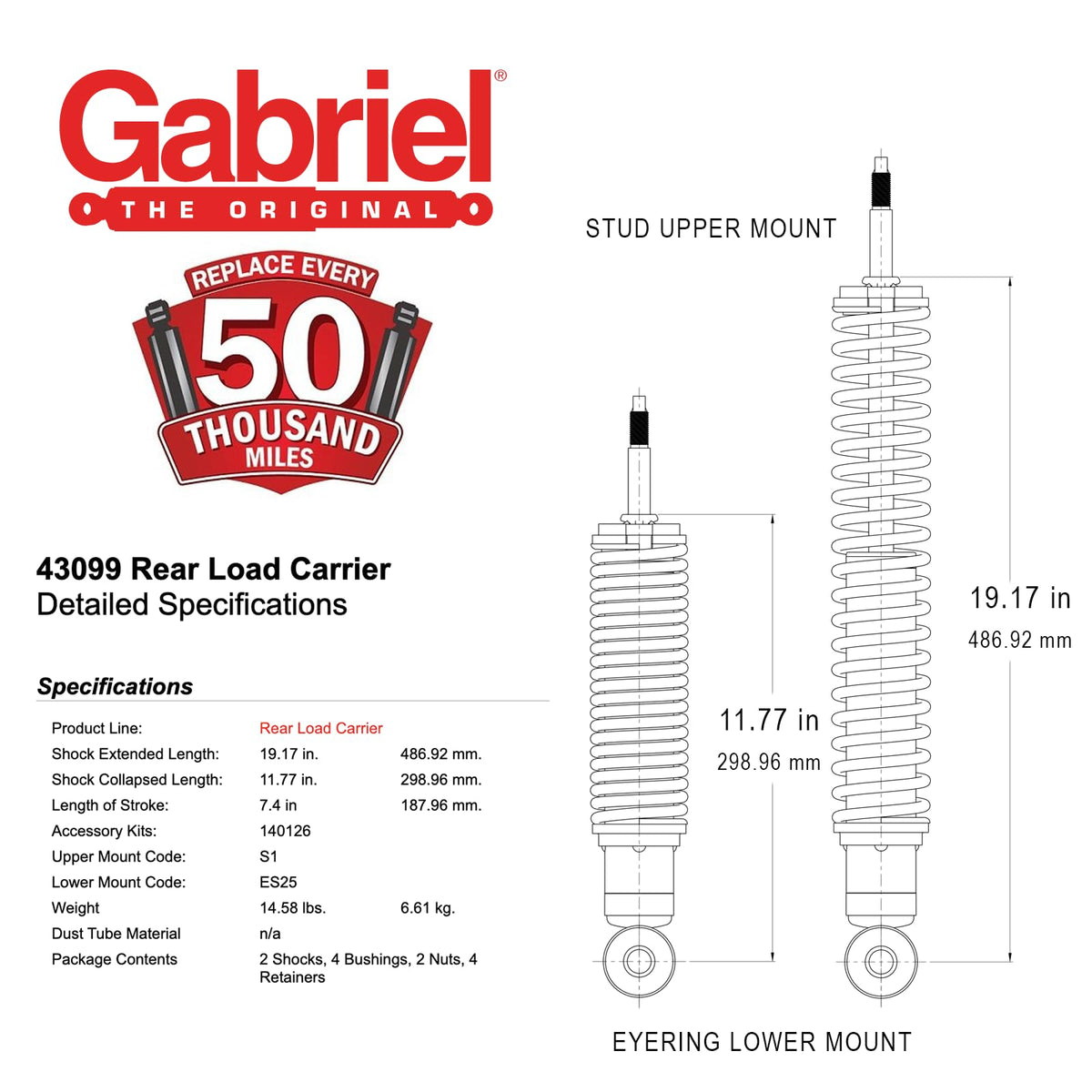 Gabriel 43099 Load Carrier Rear Towing Shock Absorbers For Ford F-100, F-150, F-250, F-350, E-100 Econoline, E-150, Bronco; Chev