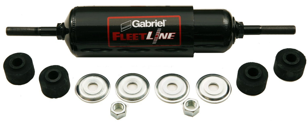 Amazon.comAdded durability makes the Fleetline 85000 and 85300 series the standard heavy duty product for todays low friction suspension. Designed as a direct replacement for the original equipment shock, FleetLine shock absorbers by Gabriel provide a valving rate that compensates for initial truck suspension softening, providing performance that better matches the original ride. Built with original equipment quality components and 10 stage valving to ensure superior performance throughout the life of the shock, it also reduces wear and tear on other costly suspension and vehicle parts. And like all Gabriel shocks and struts, Fleetline shocks feature a super-finished chrome piston rod for superior corrosion resistance and a leak-proof piston seal which extends product life.All Gabriel shocks and struts feature a super-finished chromed piston rod thatprovides superior corrsion resistance for longer life. View largerGabriel FleetLine Shocks feature: Unique pressurized piston seal design reduces force-velocity variabilities and self compensates for wear Cold formed, 360 degree arc-welded eye-ring and mounts improve durability A hydraulic rebound stop, where required, prevents shocks from topping out and suspensions from overextending Multi-lip piston seal improves fluid retention and provides longer lifeAnd like all Gabriel shocks and struts, FleetLine Shocks feature: A super-finished chromed piston rod to inhibit corrosion, ensure proper seal lubrication, provide a more consistent wear surface A leak-proof piston seal which extends product life D.O.M. (Drawn-Over-Mandrel) Tubing that reduces internal wear for longer product life About GabrielStarting in 1907, Gabriel invented the original shock absorber, followed by the first hydraulic shock absorber, the first adjustable shock absorber and the first air adjustable shock absorber. And today, it's still that same innovative, independent American company--building high-performance shocks and struts that cover over 96% of North American vehicles. Gabriel continues adding new product coverage, including expanding their line of ReadyMount strut assemblies, which make installation faster, safer and easier. And Gabriel continues that independent spirit, working hard to deliver innovative new products and services, every day.Product DescriptionGabriel Fleetline - Commercial Shocks Absorbers | Premium Heavy Duty Shock Absorbers for Trucks, Trailers and Buses (Heavy Duty & Commercial Vehicles)About GabrielFor over 100 years, Gabriel has been at the forefront of suspension technology, providing reliable and durable ride control solutions. Gabriel Fleetline Shocks are engineered specifically for heavy-duty commercial vehicles and fleet operations, delivering unmatched durability and performanceProduct DetailsFleetLine Shocks - Commercial Truck and Trailer Shocks (85000 series) - Added durability makes the Fleetline 85000 series the standard heavy duty product for todays low friction suspension. Designed as a direct replacement for the original equipment shock, FleetLine shock absorbers by Gabriel provide a valving rate that compensates for initial truck suspension softening, providing performance that better matches the original ride. Built with original equipment quality components and 10 stage valving to ensure superior performance throughout the life of the shock, it also reduces wear and tear on other costly suspension and vehicle parts. And like all Gabriel shocks and struts, FleetLine shocks feature a super-finished chrome piston rod for superior corrosion resistance and a leak proof piston seal which extends product life. Unique pressurized piston seal design reduces force-velocity variabilities and self compensates for wear. Cold formed, 360 degree arc-welded eye-ring and mounts and a 1 5/8 bore provide improved durability. A hydraulic rebound stop, where required, prevents shocks from topping out and suspensions from overextendingProduct Features Larger 1 5/8 bore supplies improved durability and greater tensile strength for harsher operating conditions Chromed piston rod to inhibit corrosion, ensure proper seal lubrication and provide a more consistent wear surface Solid steel eye rings & 360 arc-welded end mounts deliver tough tensile strength that reduces end mount failures Heavy Duty Shock Absorbers for Trucks, Trailers and Buses Anti-corrosion end mounts to inhibit rust & corrosion Durable piston seal design Bulged design provides increased fluid capacity and cooler operation in extreme conditions (85300 & 85700 series) Formulated shock oil for exceptional anti-fade performanceApplicationsFits Heavy Duty commercial trucking, Vocational and utility fleet vehicle, Public transit and school bus fleets, Recreational vehicles and campersInternational VARIOUS Additional O.E.M. Interchanges, Rear, HEAVY DUTY; Kenworth C500, C500B, C500K, C540 & C550 All with Air Glide 100 Suspension with 8 air bags, 4 units required, Rear, TRUCK & TRACTO