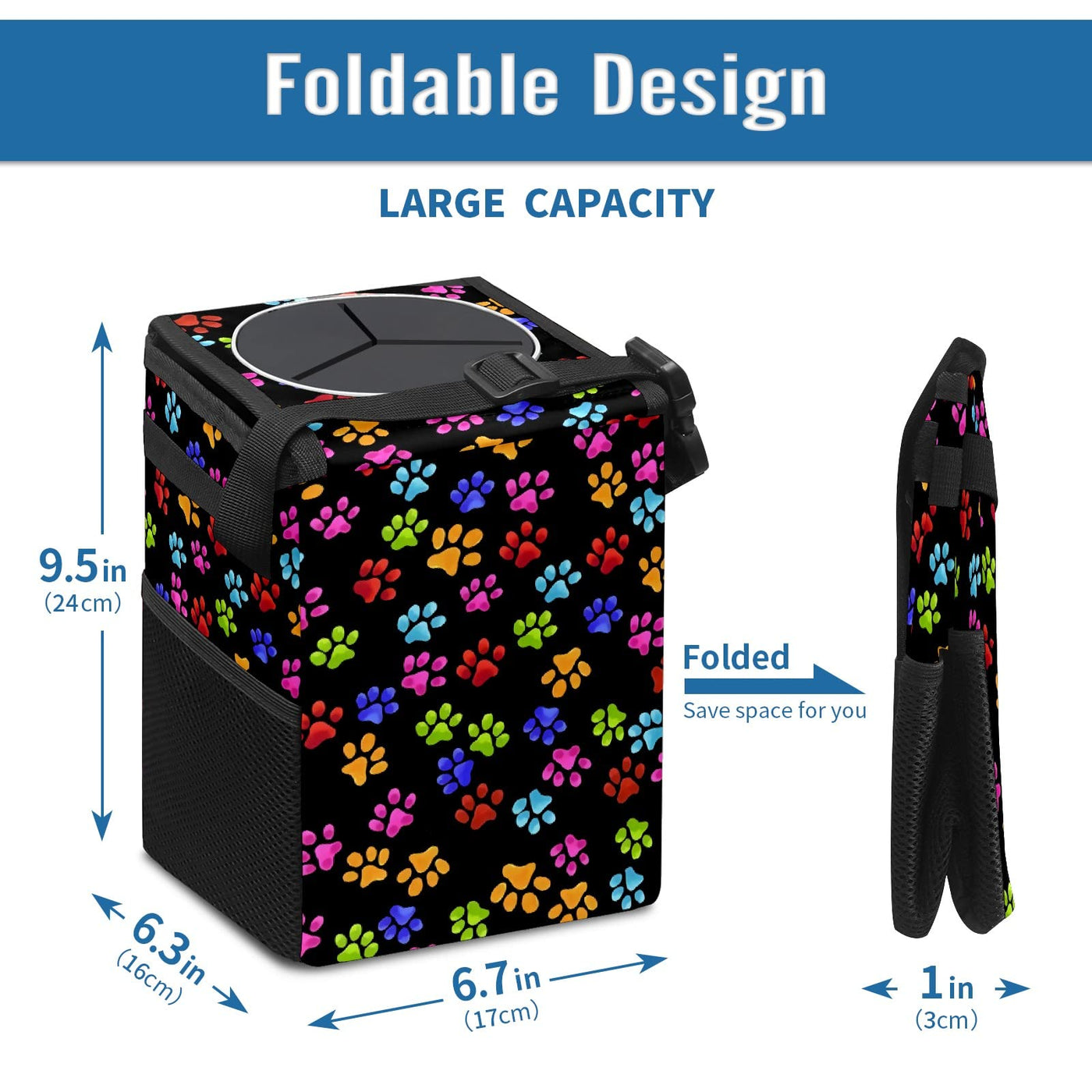 Gactivity Paws Cat And Dog Print Car Trash Can With Lid Collapsible Reusable Waterproof Car Garage Bag,Automotive Garbage Can,Car Accessories Interior Car Organizer