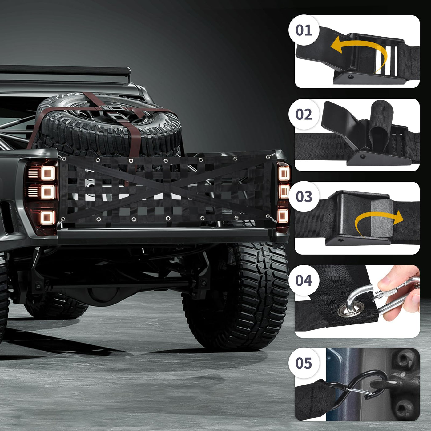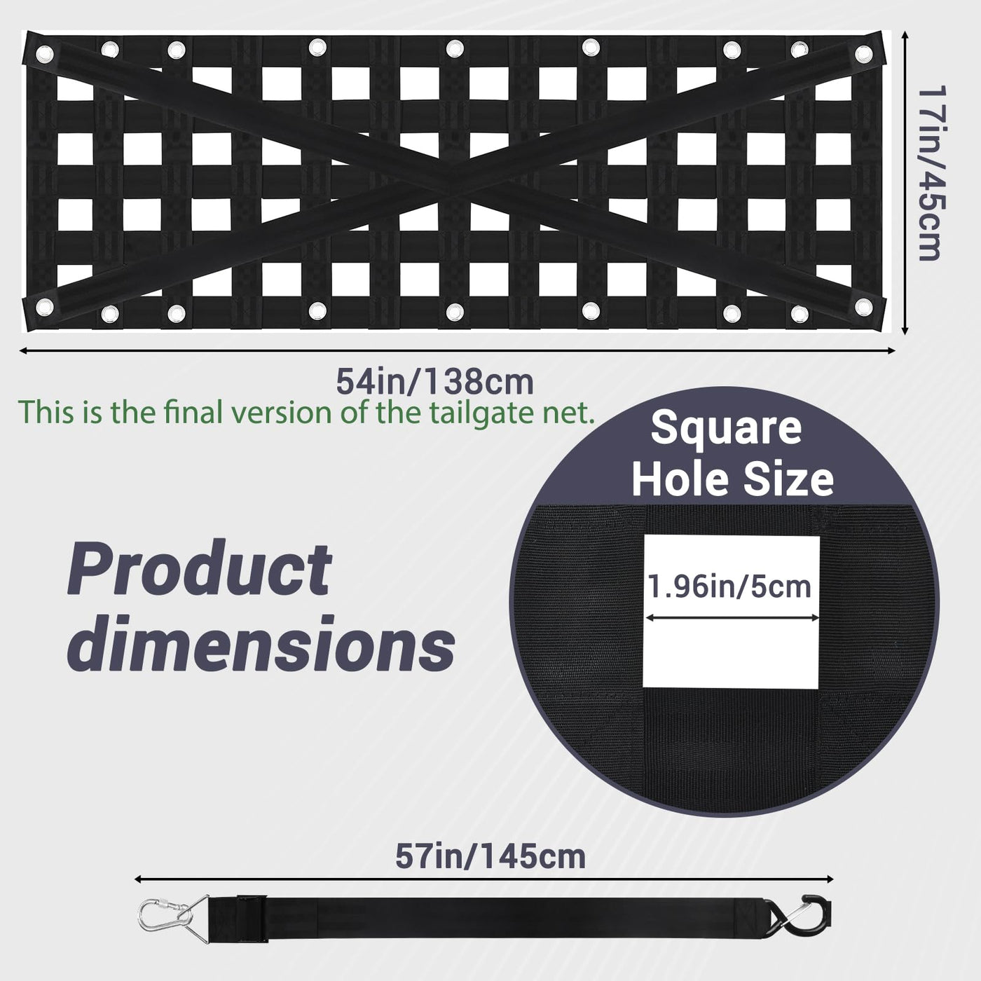 GADFISH Heavy Duty Tailgate Net, Cargo Net with 4 Adjustable Buckle Straps, Perfect for Truck, Trailer, Pickup, Boat, Jeep, SUV