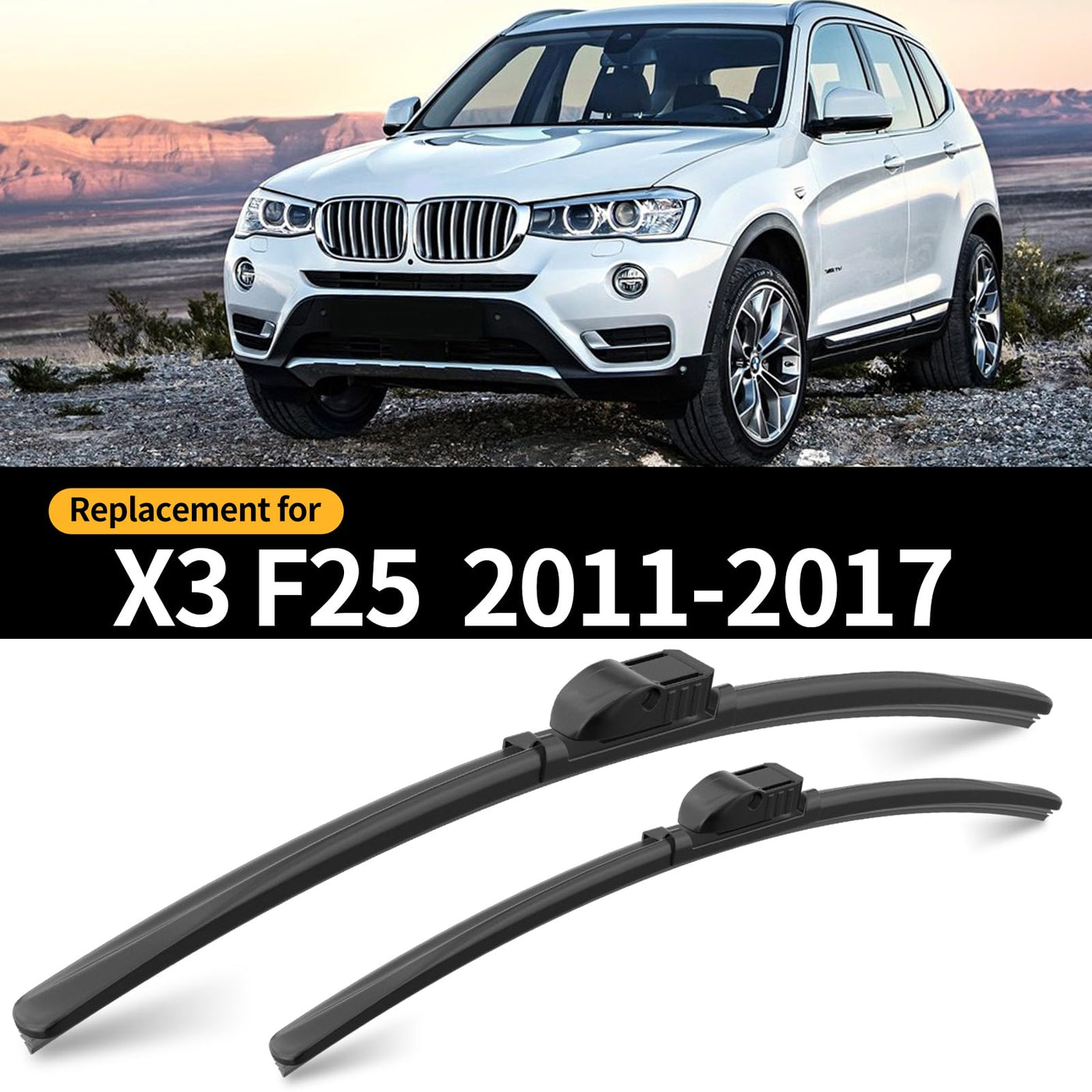 Q: Are these wiper blades compatible with my BMW X3 F25?A: Yes, these GARDIMU wiper blades are specifically designed to fit BMW X3 F25 models from 2011 to 2017, ensuring a perfect fit and optimal performance.
