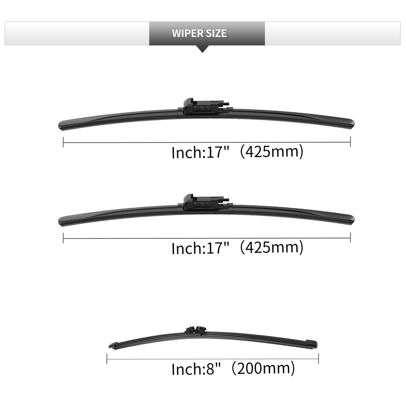 Gardimu Front And Rear Windshield Wiper Blades, 3 Pcs Front And Back Windshield Wipers Blades Replacement For Ford Bronco 2021-2