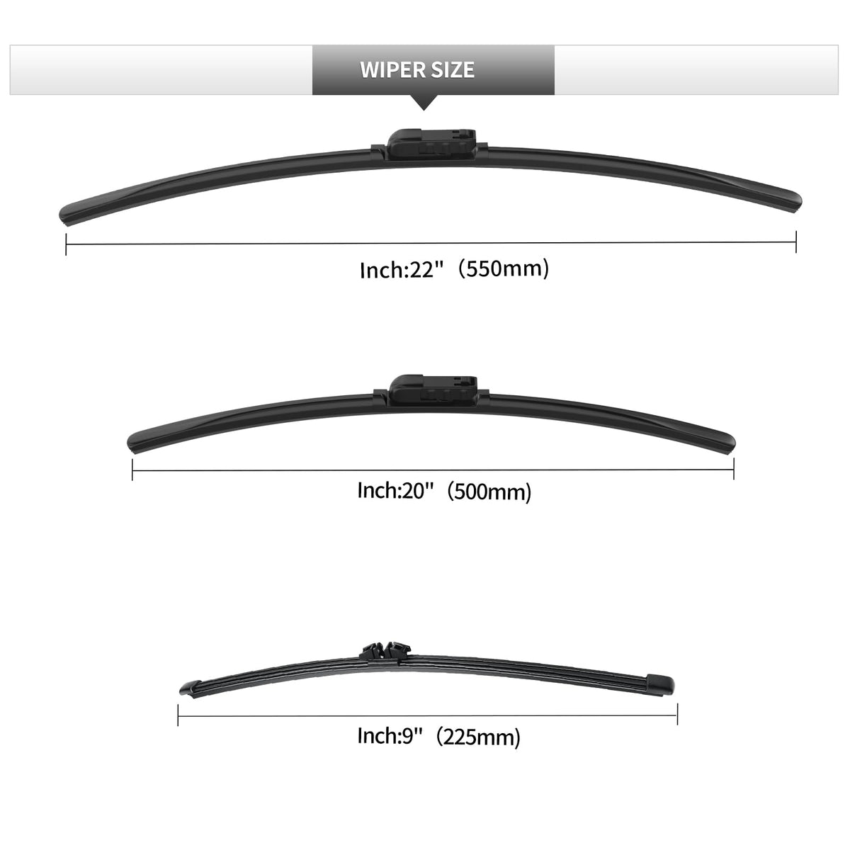 Gardimu Front And Rear Windshield Wiper Blades, 3 Pcs Front And Back Windshield Wipers Blades Replacement For Ford Bronco Sport