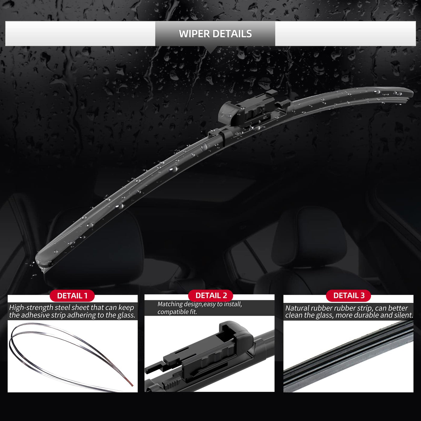 Q: How can I ensure the best performance from these wiper blades?A: For optimal performance, ensure that the windshield is clean and free of debris before using the wipers. Regularly inspect the blades for wear and replace them if they show signs of damage.