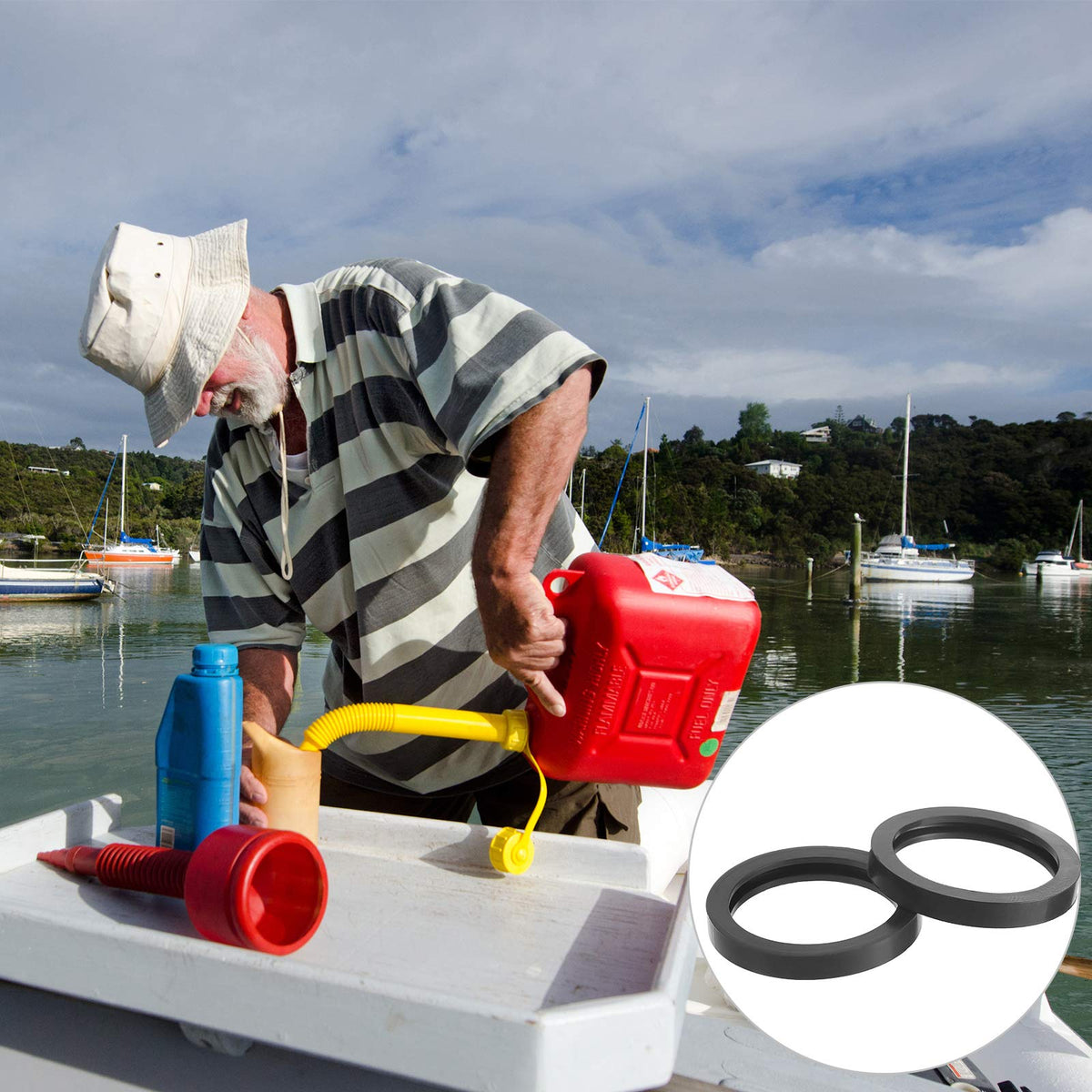 Q: How many gaskets are included in the package?A: The package contains 20 pieces of gas can spout gaskets, providing an adequate amount for daily applications and replacements.