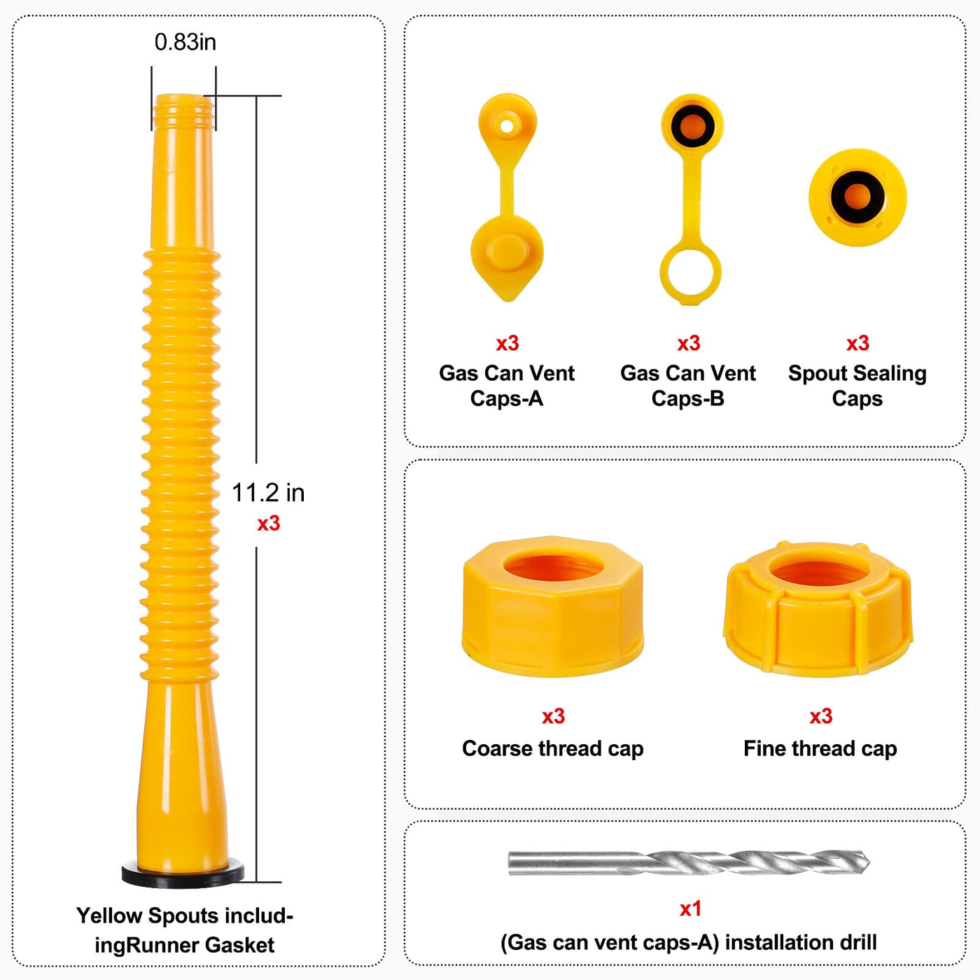 Gas Can Spout Replacement. Gas Can Nozzle 3 Kit, Total Length Is 11.2In For Easier Use. Gas Can Mouth Size 1.75In-1.8In Can Be U