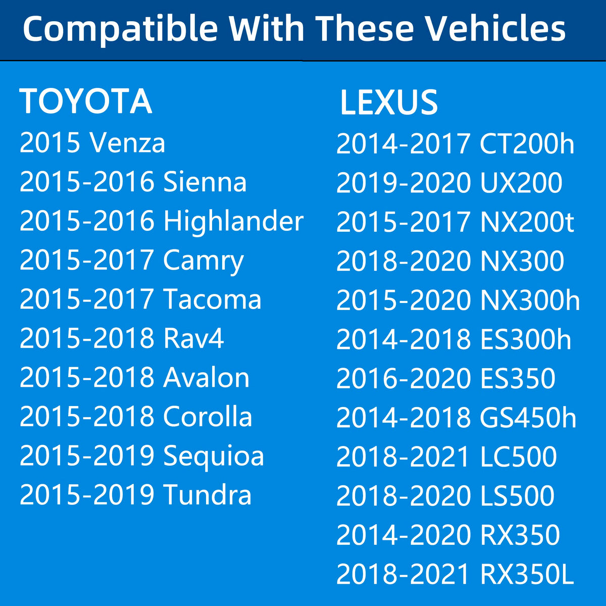 High Quality Materials, Fuel Tank Filler Cap Must Take 100% Inspected And Tested Multiple Times Before The Shipment, Gas Cap Is Constructed Of Premium Material For Long Lasting Durability And Reliability. Direct Replacement, Easy Installation.Important: Please Check The Year/Make/Model Carefully To Make Sure The Fuel Tank Filler Cap Is What You Need Before Placing Order, Thanks!Replaces Part: 77300-07030 77300-53030, Gas Cap For 15 16 17 18 19 20 21Year Models.Compatible with 2015-2019 Toyota & 2014-2021 Lexus Fuel Cap / Gas Cap : (Includ 2015 2016 2017 2018 2019 2020 2021 Models)Compatible with Toyota vehicles:2015 Venza2015-2016 Sienna2015-2016 Highlander2015-2017 Camry2015-2017 Tacoma2015-2018 Rav42015-2018 Avalon2015-2018 Corolla2015-2019 Sequioa2015-2019 TundraCompatible with Lexus Vehicles:2014-2017 CT200h2019-2020 UX2002015-2017 NX200t2018-2020 NX3002015-2020 NX300h2014-2018 ES300h2016-2020 ES3502014-2018 GS450h2018-2021 LC5002018-2020 LS5002014-2020 RX3502018-2021 RX350L