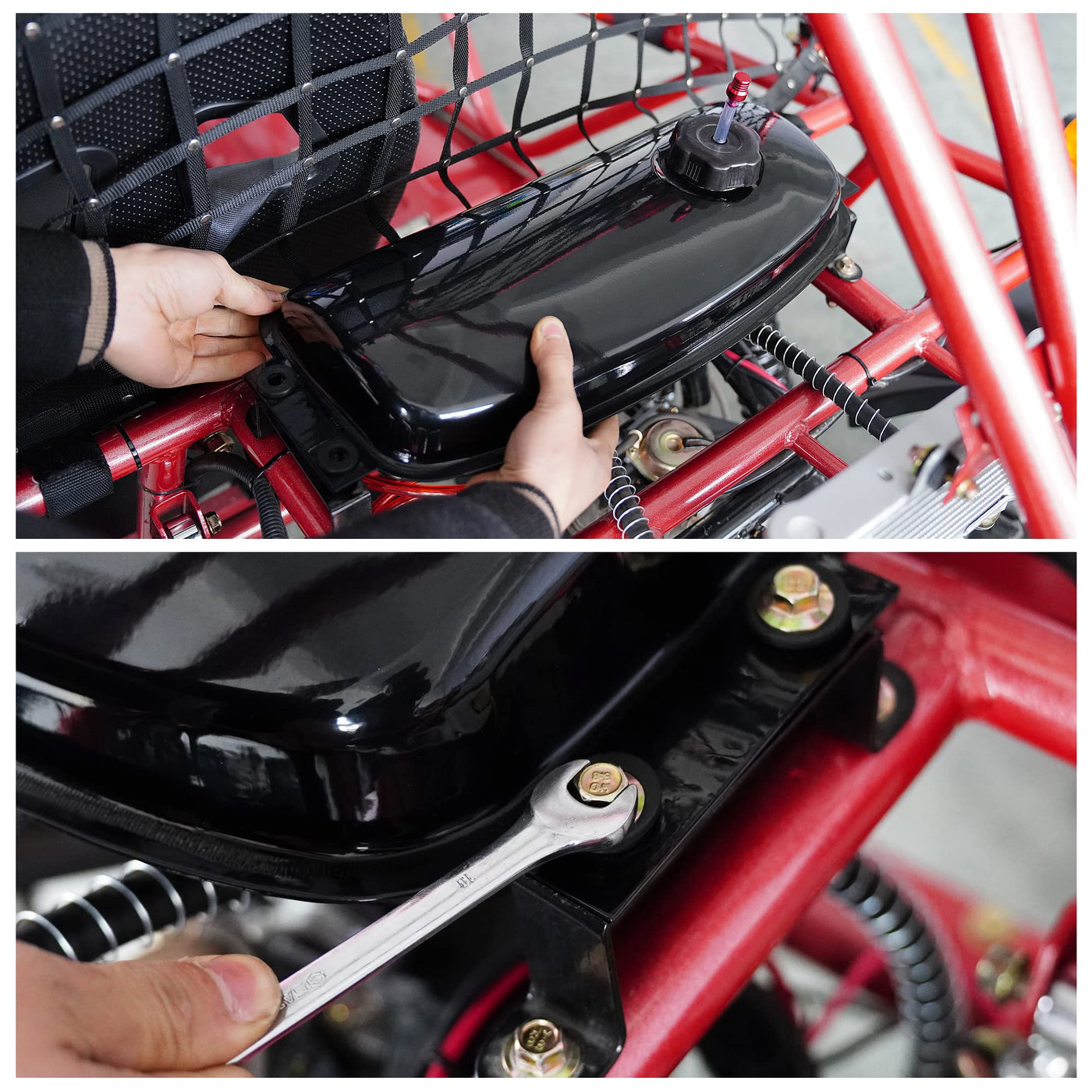 Q: Does the gas fuel tank include a filter to keep fuel clean?A: Yes, the gas fuel tank is designed with a top-notch filter screen at the filler port. This filter effectively keeps dirt and debris out of the tank, ensuring that your mini dirt bike or go-kart runs on clean gasoline or ethanol.