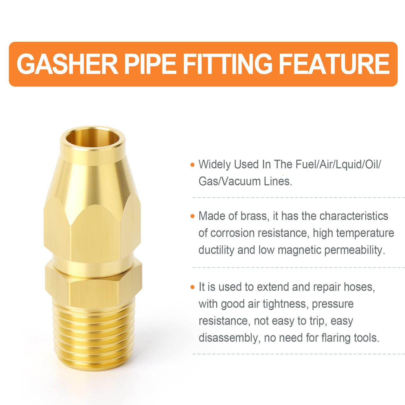 Q: Can this fitting be used with different types of hoses?A: Yes, the GASHER fitting is suitable for 1/4" ID and 5/16" OD air hoses, making it versatile for various applications in fuel, air, liquid, oil, gas, and vacuum lines.
