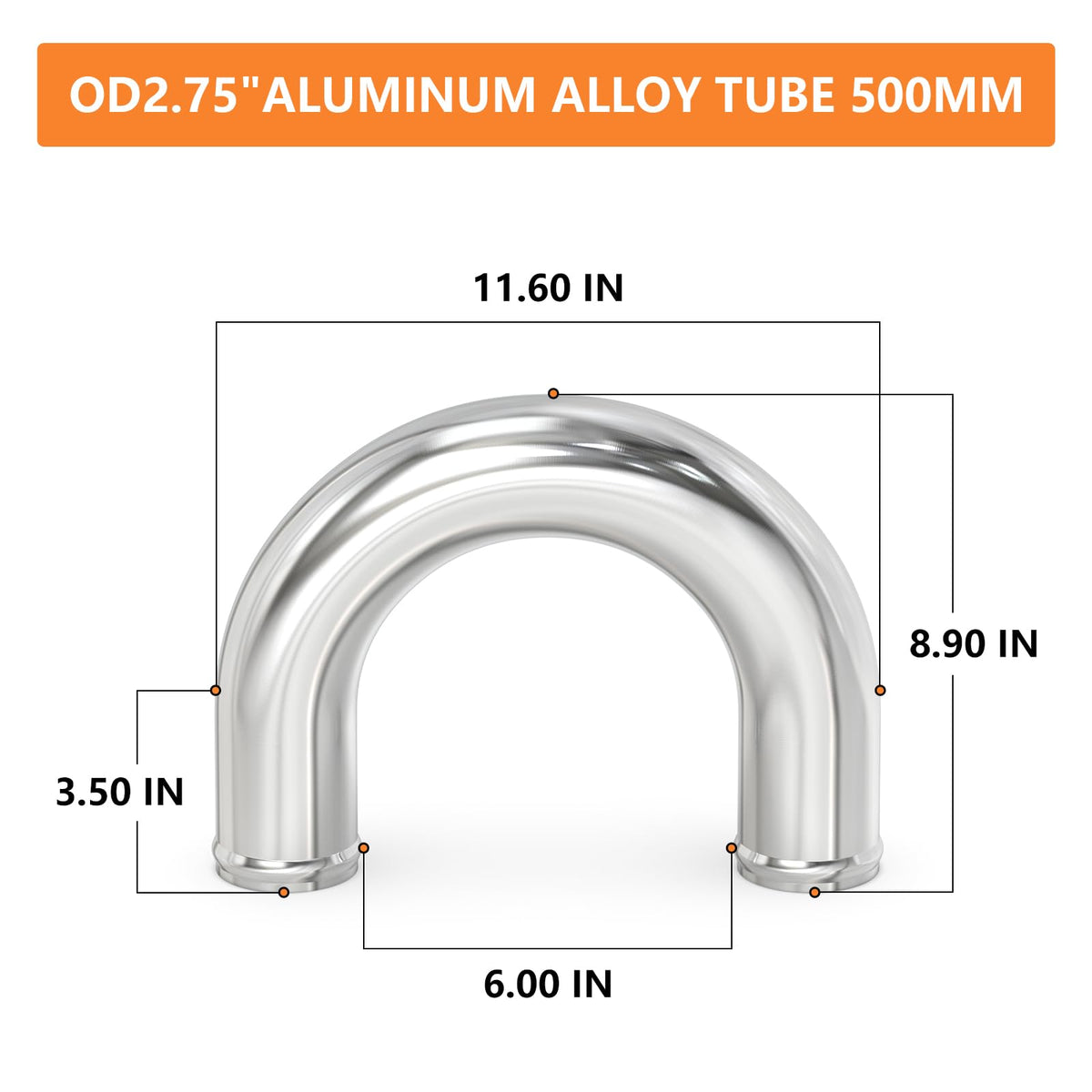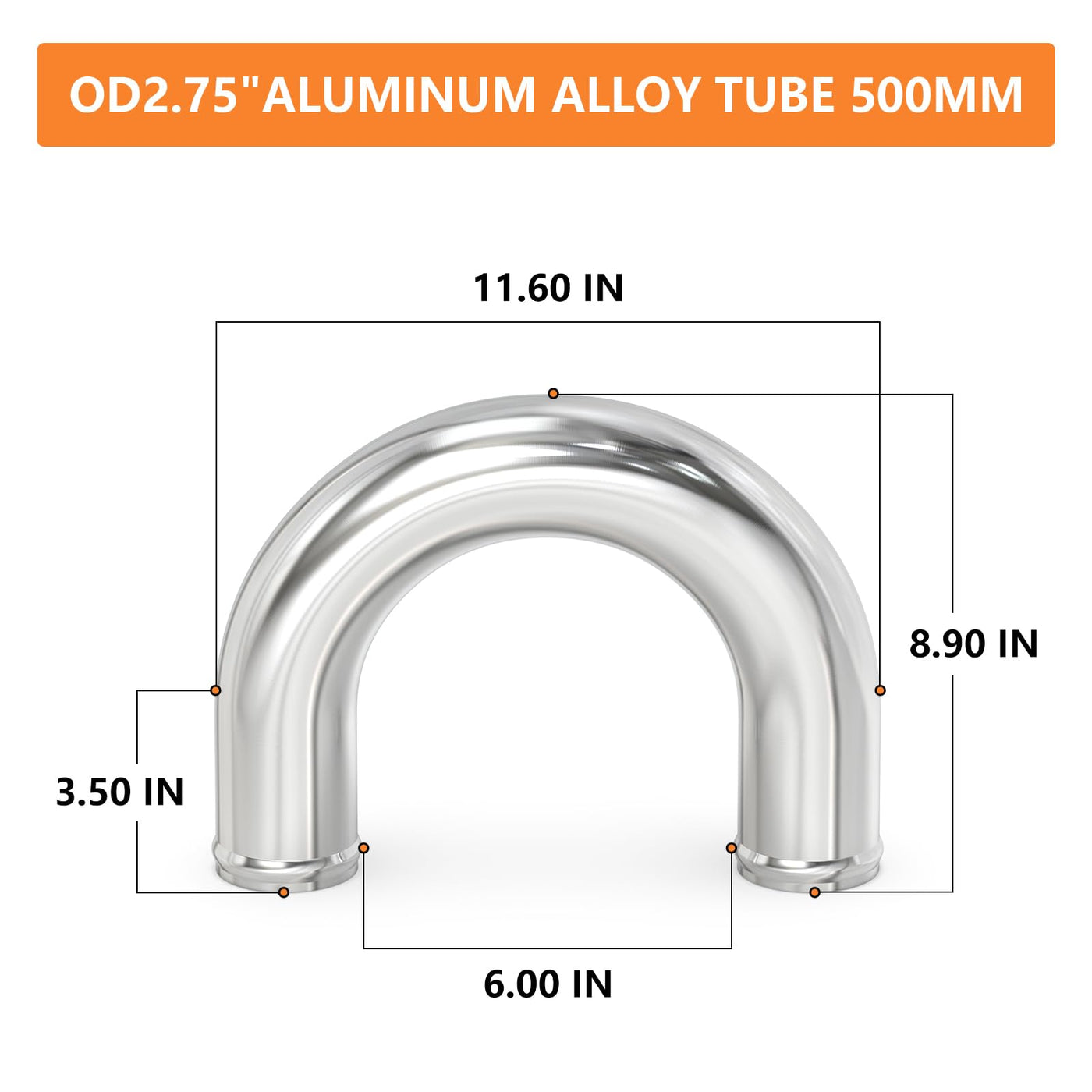 Gasher 1Pcs Intercooler Pipe Aluminum 180 Degree Elbow Alloy Tube 2.75''Od, End To End Lenght 20'' (500Mm) With Bead Roll, For I