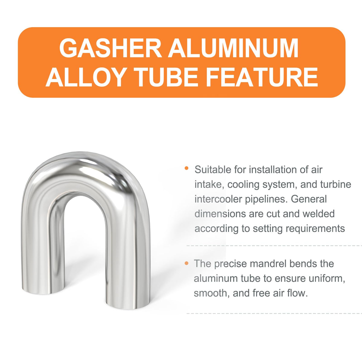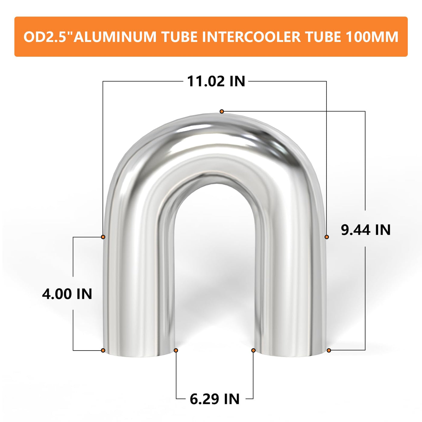 Gasher 2Pcs Intercooler Pipe Aluminum 180 Degree Elbow Alloy Tube 2.5''Od, Leg Length 4'' (100Mm), For Intake And Cooling System