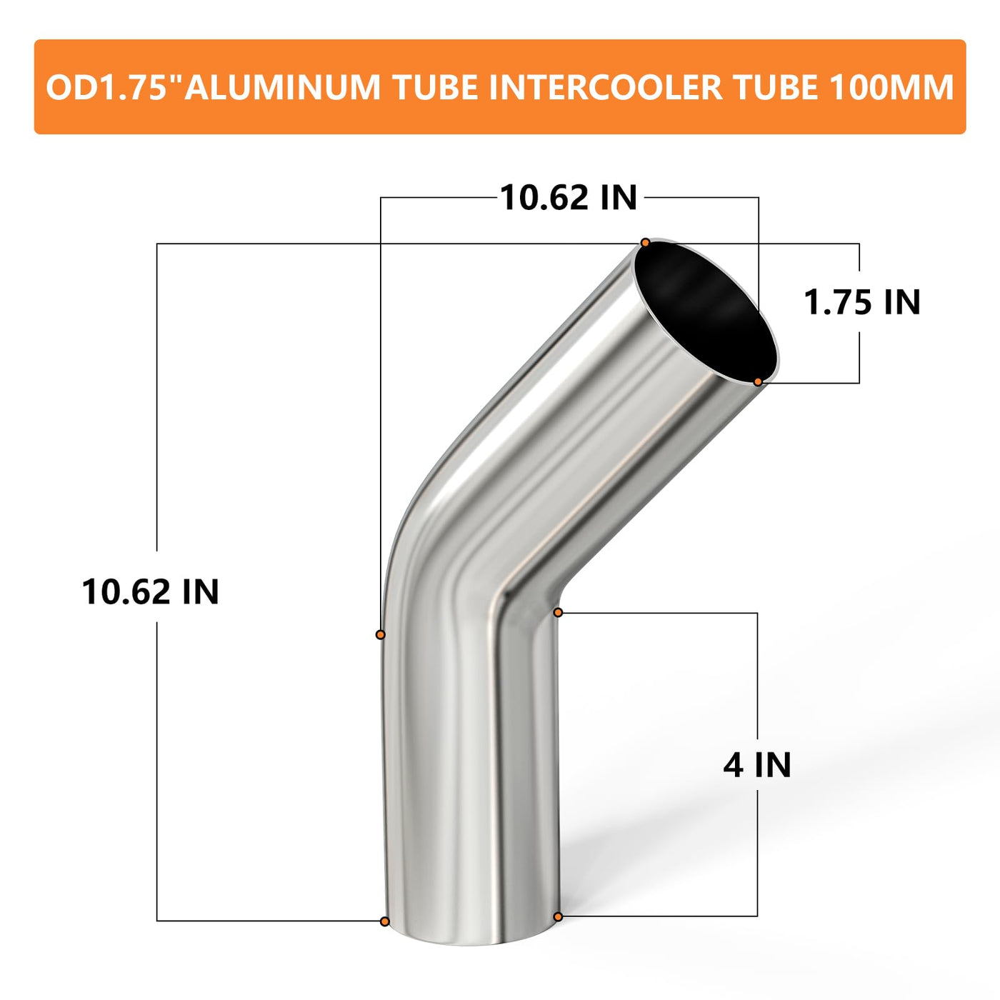 Gasher 2Pcs Intercooler Pipe Aluminum 45 Degree Elbow Alloy Tube 1.75''Od, Leg Length 4'' (100Mm), For Intake And Cooling System