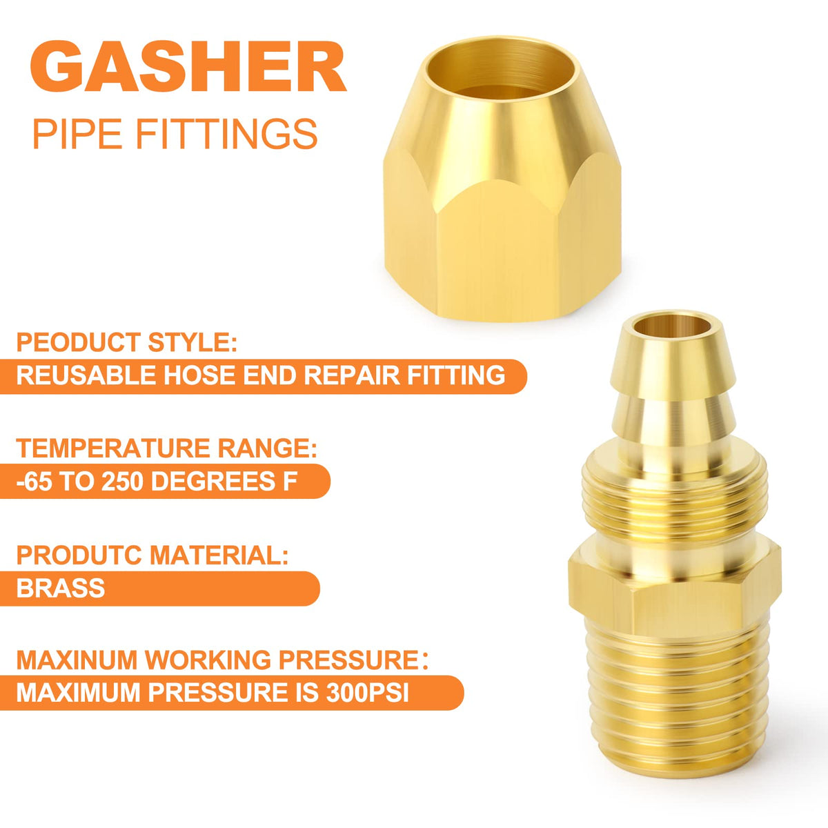 Gasher 5Pcs Brass Pneumatic Replacement Fitting, Reusable Hose End Repair Fitting 3/8' Barb(Suitable For 3/8' Id,1/2' Od Air Hose) X 1/4' Npt Rigid